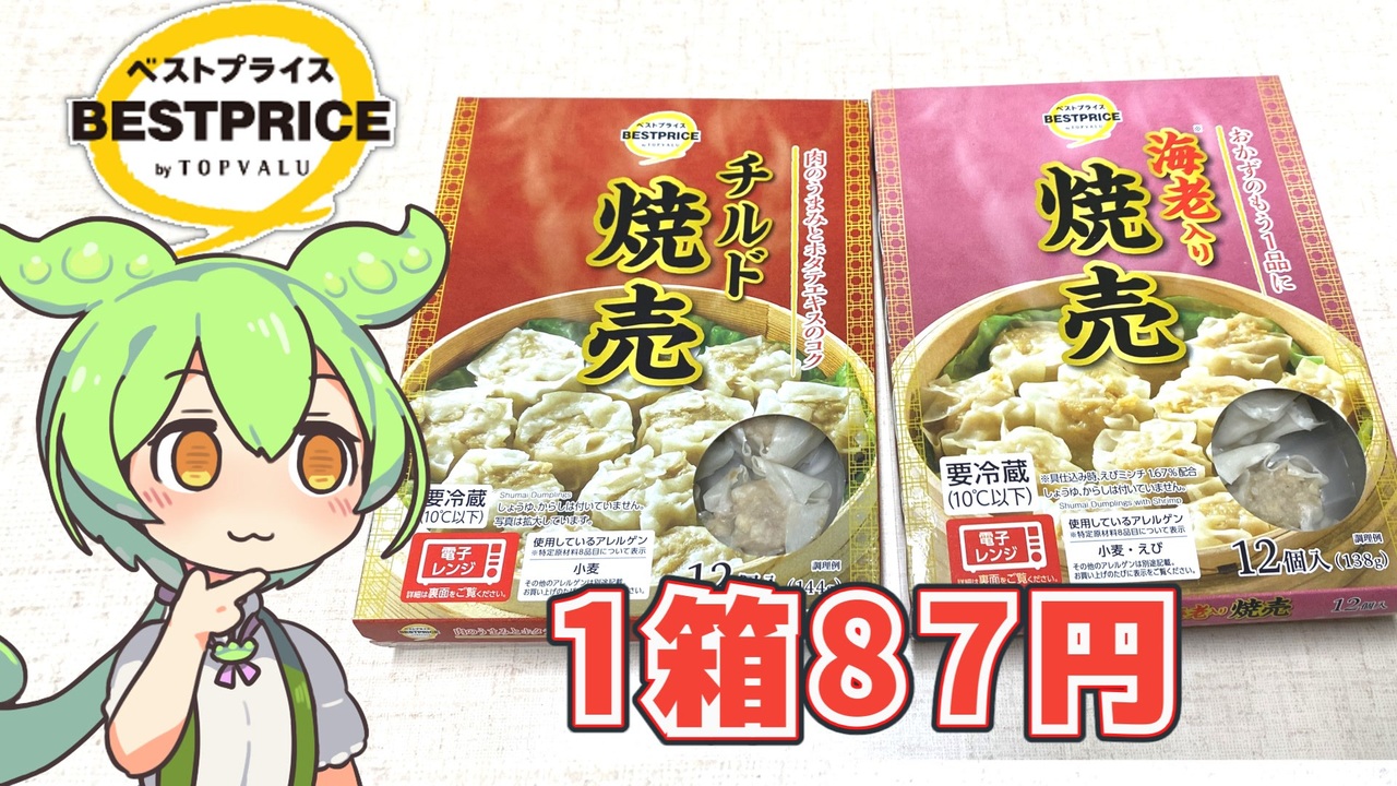 2023年秋にリニューアルした黄トプバのチルド焼売<br>以前は星3の評価を付けましたが今回はどうでしょうか。<br><br><br>【関連動画】<br>トップバリュの黄色いヤツや隠れトプバの「チルド焼売(しゅうまい)」<br><a href="https://www.nicovideo.jp/watch/sm42262347" target="_blank" rel="noopener nofollow">https://www.nicovideo.jp/watch/sm42262347</a><br><br>【参考】<br>チルド焼売(トップバリュ)<br><a href="https://www.topvalu.net/items/detail/4549741420525/" target="_blank" rel="noopener nofollow">https://www.topvalu.net/items/detail/4549741420525/</a><br>海老入り焼売(トップバリュ)<br><a href="https://www.topvalu.net/items/detail/4549414529074/" target="_blank" rel="noopener nofollow">https://www.topvalu.net/items/detail/4549414529074/</a><br>家計帽からみたファミリーライフ※PDFファイル(総務省)<br><a href="https://www.stat.go.jp/data/kakei/family6/pdf/00.pdf" target="_blank" rel="noopener nofollow">https://www.stat.go.jp/data/kakei/family6/pdf/00.pdf</a><br>焼売の購入金額の都道府県ランキング!日本一はどこ?(プリラン47)<br><a href="https://preran47.com/syumainokonyukingaku/" target="_blank" rel="noopener nofollow">https://preran47.com/syumainokonyukingaku/</a><br>うちの郷土料理 シューマイ 神奈川県(農林水産省)<br><a href="https://www.maff.go.jp/j/keikaku/syokubunka/k_ryouri/search_menu/menu/35_22_kanagawa.html" target="_blank" rel="noopener nofollow">https://www.maff.go.jp/j/keikaku/syokubunka/k_ryouri/search_menu/menu/35_22_kanagawa.html</a><br><br>【使用した素材】(※敬称略)<br>(合成音声)VOICEVOX/ずんだもん/四国めたん<br><a href="https://voicevox.hiroshiba.jp/" target="_blank" rel="noopener nofollow">https://voicevox.hiroshiba.jp/</a><br>(立ち絵)坂本アヒル<br><a href="https://seiga.nicovideo.jp/seiga/im10788496" target="_blank" rel="noopener">im10788496</a>/<a href="https://seiga.nicovideo.jp/seiga/im10791276" target="_blank" rel="noopener">im10791276</a><br>(楽曲)甘茶の音楽工房/「楽しい麦畑」「フルーツパフェ」「お城の舞踏会」<br><a href="https://amachamusic.chagasi.com/" target="_blank" rel="noopener nofollow">https://amachamusic.chagasi.com/</a>