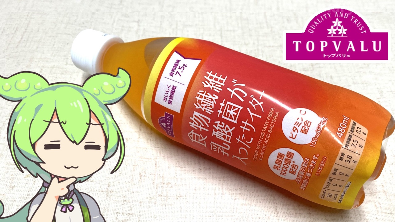 本体価格98円が値引きされ48円になっていたので買ってみました。<br><br><br>【参考】<br>食物繊維・乳酸菌が入ったサイダー(トップバリュ)<br><a href="https://www.topvalu.net/items/detail/4549414448283/" target="_blank" rel="noopener nofollow">https://www.topvalu.net/items/detail/4549414448283/</a><br>株式会社コスモフーズ<br><a href="https://cosmofoods.co.jp/" target="_blank" rel="noopener nofollow">https://cosmofoods.co.jp/</a><br>食物繊維の理想的な摂取量 カロリー「日本人の食事摂取基準」案では(NHK首都圏ナビ 2024.3.7)<br><a href="https://www.nhk.or.jp/shutoken/newsup/20240307b.html" target="_blank" rel="noopener nofollow">https://www.nhk.or.jp/shutoken/newsup/20240307b.html</a><br>食物繊維「1日25グラム」推奨=来年版の食事摂取基準―厚労省検討会(時事通信ニュース 2024.3.6)<br>「日本人の食事摂取基準(2025年版)」策定検討会(厚生労働省)<br><br>【使用した素材】(※敬称略)<br>(合成音声)VOICEVOX/ずんだもん/四国めたん<br><a href="https://voicevox.hiroshiba.jp/" target="_blank" rel="noopener nofollow">https://voicevox.hiroshiba.jp/</a><br>(立ち絵)坂本アヒル<br><a href="https://seiga.nicovideo.jp/seiga/im10788496" target="_blank" rel="noopener">im10788496</a>/<a href="https://seiga.nicovideo.jp/seiga/im10791276" target="_blank" rel="noopener">im10791276</a><br>(楽曲)甘茶の音楽工房/「楽しい麦畑」「フルーツパフェ」「お城の舞踏会」<br><a href="https://amachamusic.chagasi.com/" target="_blank" rel="noopener nofollow">https://amachamusic.chagasi.com/</a>