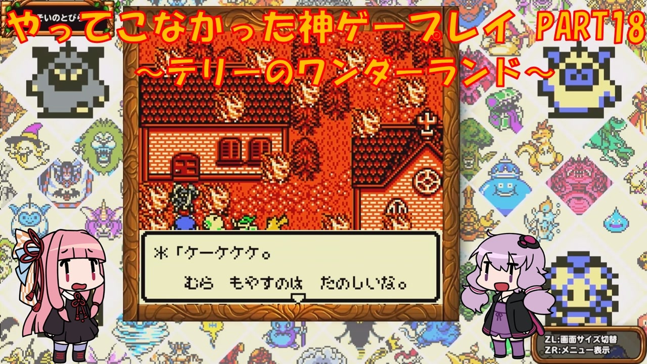 Switch版 テリーのワンダーランドレトロをプレイ<br>ゆかりさんはメジャーじゃないゲームをやる俺カッケー族だったのでドラクエをやったことがありませんでした(DSのⅤ以外)<br><br>茜:これから毎日村を焼こうぜ<br>ゆ:山賊かな?<br><br>PART1:<a href="https://www.nicovideo.jp/watch/sm43525709" target="_blank" rel="noopener nofollow">https://www.nicovideo.jp/watch/sm43525709</a><br><br>各DQシリーズ第1回リンク<br>DQ1 PART1:<a href="https://www.nicovideo.jp/watch/sm41819145" target="_blank" rel="noopener nofollow">https://www.nicovideo.jp/watch/sm41819145</a><br>DQ2 PART1:<a href="https://www.nicovideo.jp/watch/sm41895278" target="_blank" rel="noopener nofollow">https://www.nicovideo.jp/watch/sm41895278</a><br>DQ3 PART1:<a href="https://www.nicovideo.jp/watch/sm42034398" target="_blank" rel="noopener nofollow">https://www.nicovideo.jp/watch/sm42034398</a><br>DQ4 PART1:<a href="https://www.nicovideo.jp/watch/sm42520974" target="_blank" rel="noopener nofollow">https://www.nicovideo.jp/watch/sm42520974</a><br>DQ5 PART1:<a href="https://www.nicovideo.jp/watch/sm42848575" target="_blank" rel="noopener nofollow">https://www.nicovideo.jp/watch/sm42848575</a><br>DQ6 PART1:<a href="https://www.nicovideo.jp/watch/sm43080264" target="_blank" rel="noopener nofollow">https://www.nicovideo.jp/watch/sm43080264</a><br><br>動画内で使用させていただいた素材<br>【イラスト】<br>結月ゆかり→山栗鼠様:<a href="https://seiga.nicovideo.jp/seiga/im5354179" target="_blank" rel="noopener nofollow">https://seiga.nicovideo.jp/seiga/im5354179</a><br>琴葉茜→山栗鼠様:<a href="https://seiga.nicovideo.jp/seiga/im5342445" target="_blank" rel="noopener nofollow">https://seiga.nicovideo.jp/seiga/im5342445</a><br><br>【音声】<br>A.I.Voice:琴葉茜<br><a href="https://aivoice.jp/product/kotonoha/" target="_blank" rel="noopener nofollow">https://aivoice.jp/product/kotonoha/</a><br><br>A.I.Voice:結月ゆかり<br><a href="https://aivoice.jp/product/yukari/" target="_blank" rel="noopener nofollow">https://aivoice.jp/product/yukari/</a><br><br>【その他素材】<br>効果音ラボ様:<a href="https://soundeffect-lab.info/" target="_blank" rel="noopener nofollow">https://soundeffect-lab.info/</a><br>いらすとや様:<a href="https://www.irasutoya.com/" target="_blank" rel="noopener nofollow">https://www.irasutoya.com/</a><br>甘茶の音楽工房様:<a href="https://amachamusic.chagasi.com/image_bukimi.html" target="_blank" rel="noopener nofollow">https://amachamusic.chagasi.com/image_bukimi.html</a><br>等<br><br>この動画で利用している株式会社スクウェア・エニックスを代表とする共同著作者が権利を所有する著作物及びスギヤマ工房有限会社が権利を所有する楽曲の転載・配布は禁止いたします。<br>© ARMOR PROJECT/BIRD STUDIO/SQUARE ENIX All Rights Reserved.<br>© SUGIYAMA KOBO