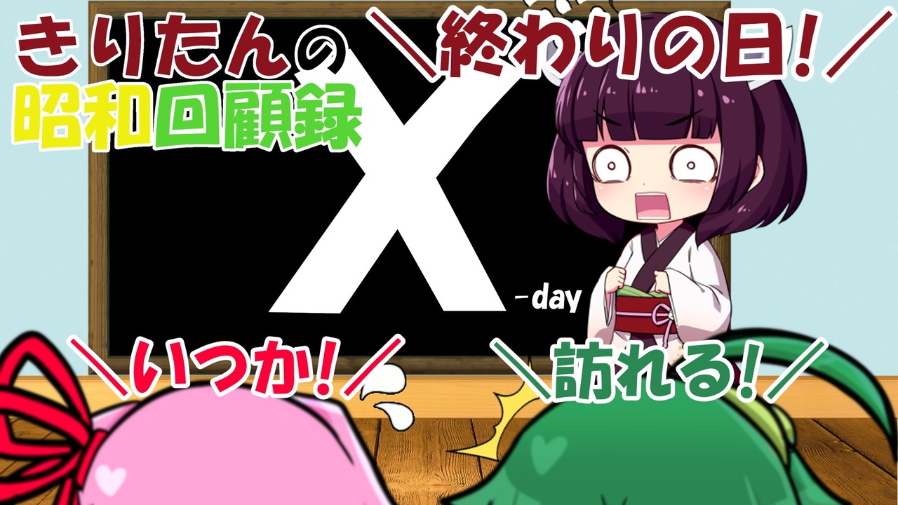<strong>ようこそ! 昭和回顧録へ!</strong><br><br>昭和64年、ラストです!<br>いよいよ最終回!<br><br>では、ごゆっくりとお楽しみください!<br><br><a href="https://www.nicovideo.jp/watch/sm43589643" class="watch">sm43589643</a> ← 前 次 → <a href="https://www.nicovideo.jp/watch/sm43770244" class="watch">sm43770244</a><br>回顧目録 → <a href="https://www.nicovideo.jp/mylist/70366107" target="_blank" rel="noopener">mylist/70366107</a><br>YouTube版 → <a href="https://youtu.be/xtqgWf1WaY4" target="_blank" rel="noopener nofollow">https://youtu.be/xtqgWf1WaY4</a><br><br>シリーズ一話マイリスト →<span style="color: #006699;"> <a href="https://www.nicovideo.jp/mylist/69322831" target="_blank" rel="noopener">mylist/69322831</a></span><br>試作品マイリスト → <a href="https://www.nicovideo.jp/mylist/69322827" target="_blank" rel="noopener">mylist/69322827</a><br><br>更新情報とか質問とかX(ツイッター) → <a href="https://twitter.com/suzakatsuki " target="_blank" rel="noopener nofollow">https://twitter.com/suzakatsuki </a><br><br>~お借りしたもの~<br>キャスト:東北きりたん、琴葉茜、東北ずん子<br>立ち絵:blueberry様(SD東北きりたん他)、りんどう様(ボイロミニキャラ後ろ姿素材)<br>背景:Pixabay様<br>小物類:写真AC様<br> イラストAC様<br>BGM:こんとどぅふぇ HiLi様<br> OP ほいっぷ!インストゥルメンタル<br> BGM ボクの旅立ち、お昼寝まくら、シーサイド・クッキー、烏丸の地、江戸桜の下で、わんわんといっしょ、港町ポルカ、目が覚めた<br>効果音:魔王魂様<br> On-Jin ~音人~様<br><br>※リンク情報などは、マイリストの説明欄にて補足しています。