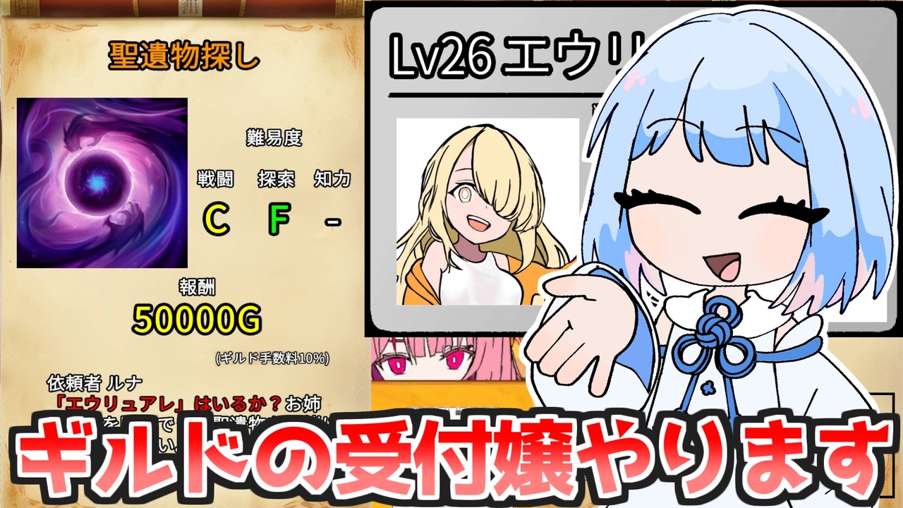 【コメント】<br><br><br>【概要】<br>【公式】がんばれ!受付嬢!様<br>『がんばれ!受付嬢2 ~Stardust Liberate~』<br>unity room→<a href="https://unityroom.com/games/guild_receptionist2" target="_blank" rel="noopener nofollow">https://unityroom.com/games/guild_receptionist2</a><br><br>【素材】<br>ニコニコモンズ 効果音ラボ<br>Otologic DOVA-SYNDROME<br><br>【マイリスト】<br>受付嬢→<a href="https://www.nicovideo.jp/mylist/76668360" target="_blank" rel="noopener">mylist/76668360</a><br>その他part1動画→<a href="https://www.nicovideo.jp/mylist/66839829" target="_blank" rel="noopener">mylist/66839829</a><br><br>【立ち絵】<br>QwOn(きゅうをん)様 琴葉茜&葵 立ち絵素材→<a href="https://seiga.nicovideo.jp/seiga/im11271654" target="_blank" rel="noopener">im11271654</a>