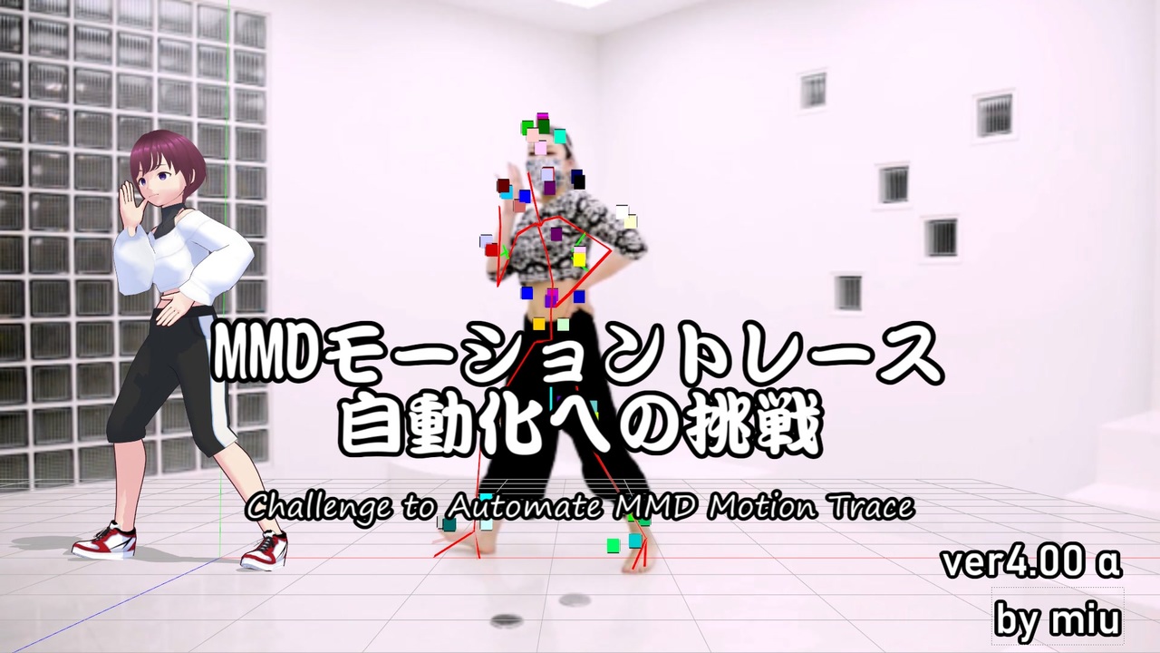超MMD3DCGフェスティバル!2024♪ 開催おめでとうございます!<br><br>MMD自動トレース v4 の正式版配布は間に合わなかったので、途中経過報告となりますw<br><br>【改修点】<br>・姿勢推定技術変更(4D-Humans採用)<br>・IKの計算ロジック修正<br>・腕捩の補間追加<br><br>-----------------<br><br>SNOBBISM<br> Music: Neru様 (<a href="https://www.nicovideo.jp/watch/sm32921516" class="watch">sm32921516</a>)<br> Dance: Babo様 (<a href="https://www.nicovideo.jp/watch/sm33220501" class="watch">sm33220501</a>)<br><br>-----------------<br><br>クラウド版(Colab)(ver3.00.04)<br>・日本語: <a href="https://colab.research.google.com/github/miu200521358/motion_trace_colab/blob/master/MMDAutoTrace3.ipynb" target="_blank" rel="noopener nofollow">https://colab.research.google.com/github/miu200521358/motion_trace_colab/blob/master/MMDAutoTrace3.ipynb</a><br>・English:<br><a href="https://colab.research.google.com/github/miu200521358/motion_trace_colab/blob/master/MMDAutoTrace3_en.ipynb" target="_blank" rel="noopener nofollow">https://colab.research.google.com/github/miu200521358/motion_trace_colab/blob/master/MMDAutoTrace3_en.ipynb</a><br><br>コンテンツツリー登録先<br><a href="https://seiga.nicovideo.jp/seiga/im10660670" target="_blank" rel="noopener">im10660670</a><br><br>Wiki<br><a href="https://github.com/miu200521358/mmd-auto-trace-3/wiki/01.%E6%A6%82%E8%A6%81" target="_blank" rel="noopener nofollow">https://github.com/miu200521358/mmd-auto-trace-3/wiki/01.%E6%A6%82%E8%A6%81</a><br><br>ソースコード<br><a href="https://github.com/miu200521358/mmd-auto-trace-3/" target="_blank" rel="noopener nofollow">https://github.com/miu200521358/mmd-auto-trace-3/</a><br />---------------------------------<br><br>Vmd(モーション)関連ツール: <a href="https://www.nicovideo.jp/series/87033" target="_blank" rel="noopener">series/87033</a><br>Pmx(モデル)関連ツール: <a href="https://www.nicovideo.jp/series/280612" target="_blank" rel="noopener">series/280612</a><br>miuの実験室出張版アーカイブ+α: <a href="https://www.nicovideo.jp/series/332318" target="_blank" rel="noopener">series/332318</a><br>MMD自動トレース挑戦の記録: <a href="https://www.nicovideo.jp/series/87034" target="_blank" rel="noopener">series/87034</a><br>MMD配布物・Tips等: <a href="https://www.nicovideo.jp/series/244805" target="_blank" rel="noopener">series/244805</a><br>自作MMD作品マイリスト: <a href="https://www.nicovideo.jp/mylist/47353166" target="_blank" rel="noopener">mylist/47353166</a><br><br>---------------------------------<br>■ ヘルプが必要な場合<br><br>ツールの不具合報告やご相談はコミュニティからお願いします<br>それ以外からのご連絡は、お答えしかねます<br><br>---------------------------------<br>■ コミュニティのご案内<br><br><strong>MMD長屋</strong>:<a href="https://discord.gg/jDqU6qRaKj" target="_blank" rel="noopener nofollow">https://discord.gg/jDqU6qRaKj</a><br><br> カテゴリごとにオーナーがいて、希望するカテゴリに参加できる形式のちょっと変わったDiscordサーバーです<br> ニコニコミュニティなどでのコミュ限配布や交流などの使い方を想定しています<br> カテゴリ開設を申請していただくことも可能です<br><br>----------------<br><br><strong>miuの実験室</strong>:<a href="https://discord.gg/MW2Bn47aCN" target="_blank" rel="noopener nofollow">https://discord.gg/MW2Bn47aCN</a><br><br> VMDサイジングやモーションサポーターなど、自作ツールに関する諸々実験室<br> 拙作ツールに関する質問や相談を受け付けています。FAQページも用意しています。<br> また一足早くベータ版を試していただくことができます。<br> 「MMD長屋」サーバーの1カテゴリなので、サーバーに参加してから参加希望を申請してください<br><br>---------------------------------<br><br>よければコーヒーの一杯でも奢ってくださいw<br><a href="https://giftee.com/u/miu200521358" target="_blank" rel="noopener nofollow">https://giftee.com/u/miu200521358</a>