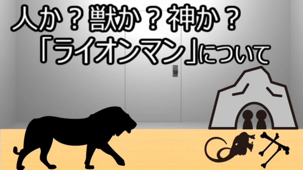 「ライオン」「骨」「洞窟」のイラストは「シルエットAC」様からお借りしました。<br>使用素材や参考動画はコンテツリー参照です。Ofuse:<a href="https://ofuse.me/ofuse/hitonoyomunasi" target="_blank" rel="noopener nofollow">https://ofuse.me/ofuse/hitonoyomunasi</a><br>音源:サークルT.M.BACH「フリーサウンド素材 セット」<br><a href="https://www.nicovideo.jp/watch/sm43630168" class="watch">sm43630168</a>←前、次→<a href="https://www.nicovideo.jp/watch/sm43790005" class="watch">sm43790005</a>、<a href="https://www.nicovideo.jp/mylist/69273414" target="_blank" rel="noopener">mylist/69273414</a>
