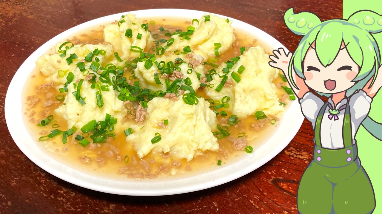 ごはんにかけてかっ込むのが最高よ<br>動画では下品だからやらないけど<br><br>前回→<a href="https://www.nicovideo.jp/watch/sm43658933" class="watch">sm43658933</a> 次回→<a href="https://www.nicovideo.jp/watch/sm43723954" class="watch">sm43723954</a><br>【材料】<br>マッシュポテト<br>・新じゃが<br>・牛乳<br>・バター<br>・塩<br>・胡椒<br>餡<br>・にんにく<br>・豚ひき肉<br>・小ネギ<br>・鷹の爪(好み 入れても辛味が足されてンまい)<br>・塩<br>・遺灰<br>・しょうゆ<br>・酒<br>・みりん<br>・中華スープの素<br>・オイスターソース<br>・水<br /><br>レシピとか質問とか雑多に募集中<br><a href="https://marshmallow-qa.com/pwilzcacj1j87mz?t=6PAejL&utm_medium=url_text&utm_source=promotion" target="_blank" rel="noopener nofollow">https://marshmallow-qa.com/pwilzcacj1j87mz?t=6PAejL&utm_medium=url_text&utm_source=promotion</a><br><br>限界マイリスト<br><a href="https://www.nicovideo.jp/series/379506" target="_blank" rel="noopener nofollow">https://www.nicovideo.jp/series/379506</a><br><br>利用させてもらったもの<br>・ VOICEVOX:ずんだもん<br>立ち絵<br>・坂本アヒル氏<br><a href="https://seiga.nicovideo.jp/seiga/im10788496" target="_blank" rel="noopener nofollow">https://seiga.nicovideo.jp/seiga/im10788496</a><br>BGM<br>・ニコニコモンズ<br><a href="https://commons.nicovideo.jp/material/nc97718" target="_blank" rel="noopener nofollow">https://commons.nicovideo.jp/material/nc97718</a><br>各ずんだもん素材<br>・ずんだおばけ氏<br><a href="https://www.nicovideo.jp/user/124111720?rf=nvpc&rp=watch&ra=video_information" target="_blank" rel="noopener nofollow">https://www.nicovideo.jp/user/124111720?rf=nvpc&rp=watch&ra=video_information</a> <a href="https://www.youtube.com/@ZundaGhost" target="_blank" rel="noopener nofollow">https://www.youtube.com/@ZundaGhost</a><br>SE<br>・効果音ラボ<br><br>見てくれて感謝!<br>いいね・コメント・フォロー。マイリストも下さった方<br>ありがとうございます<br>・救援物資欲しいモノリスト<br><a href="https://www.amazon.co.jp/hz/wishlist/ls/2Q8W3EKKLTRVS?ref_=wl_fv_le" target="_blank" rel="noopener nofollow">https://www.amazon.co.jp/hz/wishlist/ls/2Q8W3EKKLTRVS?ref_=wl_fv_le</a><br>・お手紙とか干し芋から送れないものはこちら<br><a href="https://ouen55.com/sentwin5496/" target="_blank" rel="noopener nofollow">https://ouen55.com/sentwin5496/</a><br>