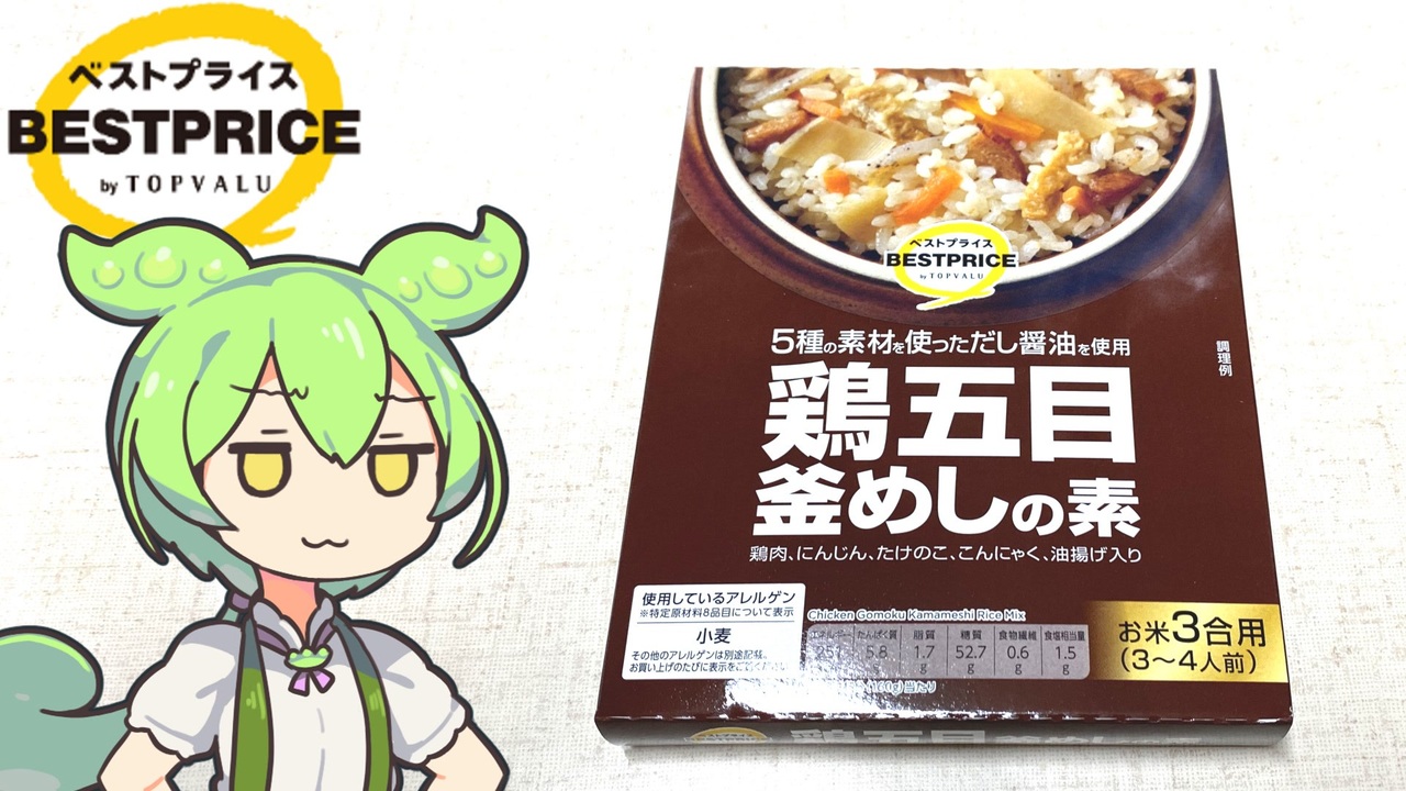 2023年の春に食べた化粧品のにおいがする鶏五目釜めしの素が<br>リニューアルしたと聞き買ってきました。<br>箱のデザインは変わっていますが果たして味は…<br><br><br>【関連動画】<br>トップバリュの黄色いヤツ「お米」※鶏釜めしの素が登場します<br><a href="https://www.youtube.com/watch?v=Sd9KputfyGE" target="_blank" rel="noopener nofollow">https://www.youtube.com/watch?v=Sd9KputfyGE</a><br><br>【参考】<br>鶏五目釜めしの素(2024年リニューアル版)(トップバリュ)<br><a href="https://www.topvalu.net/items/detail/4549414571462/" target="_blank" rel="noopener nofollow">https://www.topvalu.net/items/detail/4549414571462/</a><br>鶏五目釜めしの素(2024年3月製造終了)(トップバリュ)<br><a href="https://www.topvalu.net/items/detail/4549414027204/" target="_blank" rel="noopener nofollow">https://www.topvalu.net/items/detail/4549414027204/</a><br>イージートゥユース あさり飯の素(トップバリュ)<br><a href="https://www.topvalu.net/items/detail/4549414539523/" target="_blank" rel="noopener nofollow">https://www.topvalu.net/items/detail/4549414539523/</a><br>福島ユナイテッドFC農業部<br><a href="https://fufc-nougyoubu.com/" target="_blank" rel="noopener nofollow">https://fufc-nougyoubu.com/</a><br><br>【使用した素材】(※敬称略)<br>(合成音声)VOICEVOX/ずんだもん/四国めたん<br><a href="https://voicevox.hiroshiba.jp/" target="_blank" rel="noopener nofollow">https://voicevox.hiroshiba.jp/</a><br>(立ち絵)坂本アヒル<br><a href="https://seiga.nicovideo.jp/seiga/im10788496" target="_blank" rel="noopener">im10788496</a>/<a href="https://seiga.nicovideo.jp/seiga/im10791276" target="_blank" rel="noopener">im10791276</a><br>(楽曲)甘茶の音楽工房/「楽しい麦畑」「フルーツパフェ」「お城の舞踏会」<br><a href="https://amachamusic.chagasi.com/" target="_blank" rel="noopener nofollow">https://amachamusic.chagasi.com/</a>