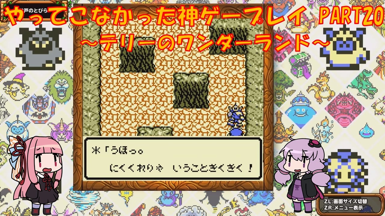 Switch版 テリーのワンダーランドレトロをプレイ<br>ゆかりさんはメジャーじゃないゲームをやる俺カッケー族だったのでドラクエをやったことがありませんでした(DSのⅤ以外)<br><br>ゆ:ウホッ!肉をくれればホイホイ言うことを聞いちゃうんだぜ?<br>茜:肉ないで<br><br>PART1:<a href="https://www.nicovideo.jp/watch/sm43525709" target="_blank" rel="noopener nofollow">https://www.nicovideo.jp/watch/sm43525709</a><br><br>各DQシリーズ第1回リンク<br>DQ1 PART1:<a href="https://www.nicovideo.jp/watch/sm41819145" target="_blank" rel="noopener nofollow">https://www.nicovideo.jp/watch/sm41819145</a><br>DQ2 PART1:<a href="https://www.nicovideo.jp/watch/sm41895278" target="_blank" rel="noopener nofollow">https://www.nicovideo.jp/watch/sm41895278</a><br>DQ3 PART1:<a href="https://www.nicovideo.jp/watch/sm42034398" target="_blank" rel="noopener nofollow">https://www.nicovideo.jp/watch/sm42034398</a><br>DQ4 PART1:<a href="https://www.nicovideo.jp/watch/sm42520974" target="_blank" rel="noopener nofollow">https://www.nicovideo.jp/watch/sm42520974</a><br>DQ5 PART1:<a href="https://www.nicovideo.jp/watch/sm42848575" target="_blank" rel="noopener nofollow">https://www.nicovideo.jp/watch/sm42848575</a><br>DQ6 PART1:<a href="https://www.nicovideo.jp/watch/sm43080264" target="_blank" rel="noopener nofollow">https://www.nicovideo.jp/watch/sm43080264</a><br><br>動画内で使用させていただいた素材<br>【イラスト】<br>結月ゆかり→山栗鼠様:<a href="https://seiga.nicovideo.jp/seiga/im5354179" target="_blank" rel="noopener nofollow">https://seiga.nicovideo.jp/seiga/im5354179</a><br>琴葉茜→山栗鼠様:<a href="https://seiga.nicovideo.jp/seiga/im5342445" target="_blank" rel="noopener nofollow">https://seiga.nicovideo.jp/seiga/im5342445</a><br><br>【音声】<br>A.I.Voice:琴葉茜<br><a href="https://aivoice.jp/product/kotonoha/" target="_blank" rel="noopener nofollow">https://aivoice.jp/product/kotonoha/</a><br><br>A.I.Voice:結月ゆかり<br><a href="https://aivoice.jp/product/yukari/" target="_blank" rel="noopener nofollow">https://aivoice.jp/product/yukari/</a><br><br>【その他素材】<br>効果音ラボ様:<a href="https://soundeffect-lab.info/" target="_blank" rel="noopener nofollow">https://soundeffect-lab.info/</a><br>いらすとや様:<a href="https://www.irasutoya.com/" target="_blank" rel="noopener nofollow">https://www.irasutoya.com/</a><br>甘茶の音楽工房様:<a href="https://amachamusic.chagasi.com/image_bukimi.html" target="_blank" rel="noopener nofollow">https://amachamusic.chagasi.com/image_bukimi.html</a><br>等<br><br>この動画で利用している株式会社スクウェア・エニックスを代表とする共同著作者が権利を所有する著作物及びスギヤマ工房有限会社が権利を所有する楽曲の転載・配布は禁止いたします。<br>© ARMOR PROJECT/BIRD STUDIO/SQUARE ENIX All Rights Reserved.<br>© SUGIYAMA KOBO