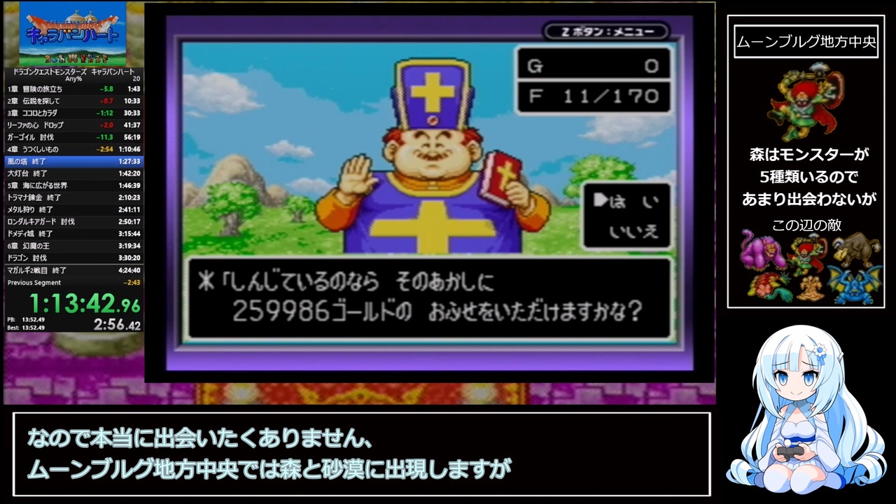 キャラバンハートを走らせていただいたので作った解説?動画の第五回です。<br>解説動画の再生・広告・コメント・いいね・マイリストいつもありがとうございます!<br>チャートをnoteに書きました!良かったら見て下さい<a href="https://note.com/magaga_rugigi/n/n32ffcbc2f33c" target="_blank" rel="noopener nofollow">https://note.com/magaga_rugigi/n/n32ffcbc2f33c</a><br>Speedrun com基準でタイマーを切っているので、計測区間がニコ生RTAの走者さんと違っています<br>Defeat Magarugiはマガルギを倒すまでの時間を計測するレギュレーションです。<br>あなたのなまえはキでいいですか?でタイマースタート<br>マガルギを倒した瞬間にタイマーストップ<br>part1:<a href="https://www.nicovideo.jp/watch/sm43455684" class="watch">sm43455684</a> part4:<a href="https://www.nicovideo.jp/watch/sm43626304" class="watch">sm43626304</a> part6:<a href="https://www.nicovideo.jp/watch/sm43761389" class="watch">sm43761389</a><br><br>・お借りしたもの<br>VOICEVOX:WhiteCUL<br>moiky様 低頭身WhiteCUL立ち絵素材<br><br>この動画で利用している株式会社スクウェア・エニックスを代表とする共同著作者が権利を所有する著作物及びスギヤマ工房有限会社が権利を所有する楽曲の転載・配布は禁止いたします。<br>© ARMOR PROJECT/BIRD STUDIO/SQUARE ENIX All Rights Reserved.<br>© SUGIYAMA KOBO<br><br>ドラクエX<br>この動画で利用している株式会社スクウェア・エニックスを代表とする共同著作者が権利を所有する著作物及びスギヤマ工房有限会社が権利を所有する楽曲の転載・配布は禁止いたします。<br>(C) ARMOR PROJECT/BIRD STUDIO/SQUARE ENIX All Rights Reserved.<br>(C) SUGIYAMA KOBO<br>(P) SUGIYAMA KOBO
