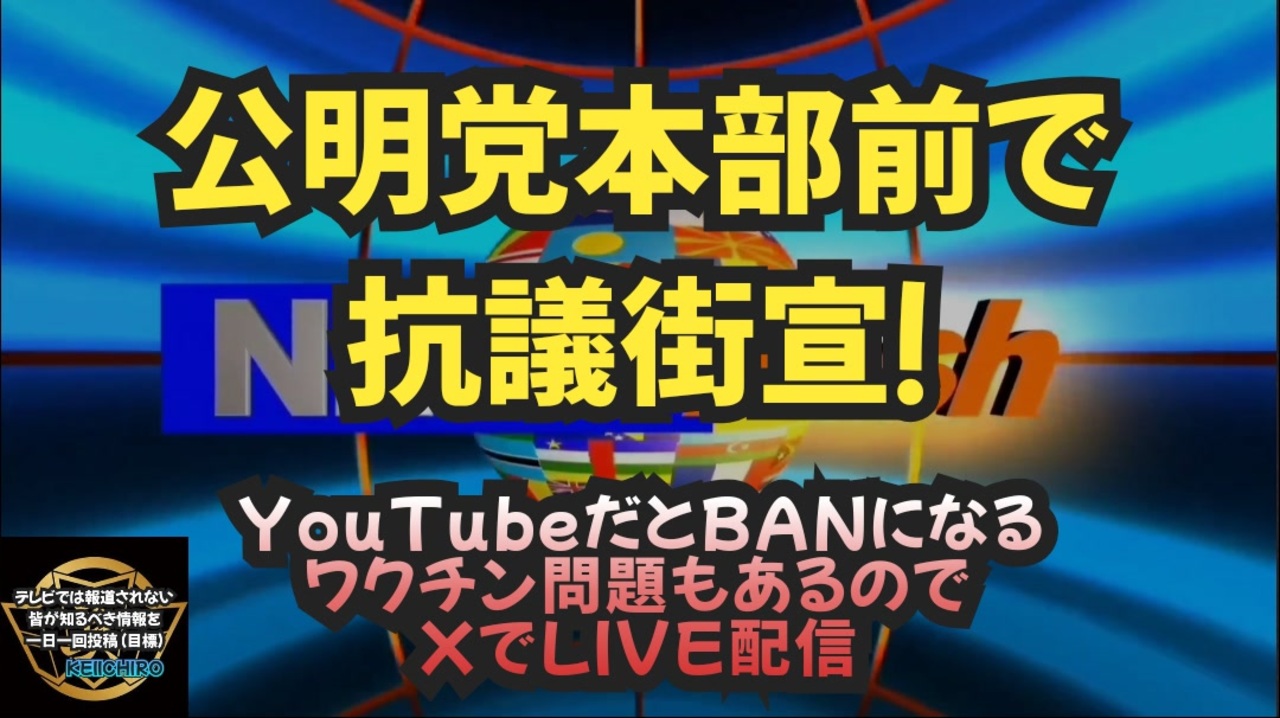 お知らせです<br>ただい公明党本部前でつばさの党が抗議街宣<br>XでLIVE配信中<br><br>先行してYouTubeでLIVE配信していたが、LIVEごと消されたらしい<br><br><br>黒川あつひこさんのポストより引用<br><br>これから公明党本部前で抗議街宣!<br><br>創価学会の幹部Revoさんが爆弾発言します!<br>ワクチンの話もあるのでXライブ!<br><a href="https://twitter.com/democracymonst/status/1782996148665602494?t=XadfnzEKv9tx67rPRK_tlg&s=19" target="_blank" rel="noopener nofollow">https://twitter.com/democracymonst/status/1782996148665602494?t=XadfnzEKv9tx67rPRK_tlg&s=19</a><br><br><br>何かとお騒がせ中のつばさの党の皆さんですが、<br>恒例公明党に抗議街宣<br>コロナワクチンの推進、モデルナ誘致に大いに貢献した公明党に抗議街宣!<br>XLIVE配信終了後アーカイブで抗議街宣がフルで見られます<br><br><br>つばさの党 黒川敦彦 公明党 創価学会 ワクチン 新型コロナウイルス カルト宗教 抗議 抗議街宣 ワクチン被害 ワクチン推進 浅間山荘事件 池田大作 ワクチン後遺症 ワクチン死 超過死亡 <br><br><br><br />著作権、肖像権に配慮して作成しております。<br><br>◆気になったニュースの台本!?<br>メモ代わりに作った台本をそのままあげてます<br><a href="https://keiichiro8140.hatenablog.com/." target="_blank" rel="noopener nofollow">https://keiichiro8140.hatenablog.com/.</a><br><br><br>ここからはシリーズ紹介<br><br><br>◆ ワクチン解毒・デトックス<br><a href="https://x.gd/fZweg" target="_blank" rel="noopener nofollow">https://x.gd/fZweg</a><br><br>◆ウイリアム・マキス博士のがん治療(イベルメクチン・フェンベンダゾール等)<br><a href="https://x.gd/AtFYS" target="_blank" rel="noopener nofollow">https://x.gd/AtFYS</a><br><br>◆予防接種健康被害救済制度<br><a href="https://x.gd/0xK9x" target="_blank" rel="noopener nofollow">https://x.gd/0xK9x</a><br><br>◆気になったニュース #1501~<br><br>◆ 【ショートver】気になったニュース<br><a href="https://x.gd/7MxXC" target="_blank" rel="noopener nofollow">https://x.gd/7MxXC</a><br><br>◆ 気になったニュース #1001~<br><a href="https://x.gd/Lp8gv" target="_blank" rel="noopener nofollow">https://x.gd/Lp8gv</a><br><br>◆ 気になったニュース #501~<br><a href="https://x.gd/EmbS4" target="_blank" rel="noopener nofollow">https://x.gd/EmbS4</a><br><br>◆ 気になったニュース #1~#500<br><a href="https://x.gd/uPhNb" target="_blank" rel="noopener nofollow">https://x.gd/uPhNb</a><br><br>◆ X(旧Twitter)・テレグラムで気になった情報<br><a href="https://x.gd/YG6FT" target="_blank" rel="noopener nofollow">https://x.gd/YG6FT</a><br><br>◆ 日比谷5万人パレードデ⚪生放送アーカイブ動画<br><a href="https://x.gd/3CHJv" target="_blank" rel="noopener nofollow">https://x.gd/3CHJv</a><br><br>◆日比谷5万人パレード⚪モのマイリスト作ってみました<br><a href="https://nico.ms/mylist/76828848?ref=sp_other" target="_blank" rel="noopener nofollow">https://nico.ms/mylist/76828848?ref=sp_other</a><br><br>◆3.30 令和の百姓⚪⚪<br><a href="https://www.nicovideo.jp/series/511791?ref=garage_share_other" target="_blank" rel="noopener nofollow">https://www.nicovideo.jp/series/511791?ref=garage_share_other</a><br><br>◆ 及川幸久さんの【XNEWS】シリーズ<br><a href="https://x.gd/3k78K" target="_blank" rel="noopener nofollow">https://x.gd/3k78K</a><br><br>◆これまでの動画<a href="https://x.gd/sPXoJ" target="_blank" rel="noopener nofollow">https://x.gd/sPXoJ</a><br><br>◆もしも(BAN)の時のためのマイリンク集<a href="https://lit.link/K-16_News44" target="_blank" rel="noopener nofollow">https://lit.link/K-16_News44</a><br><br>