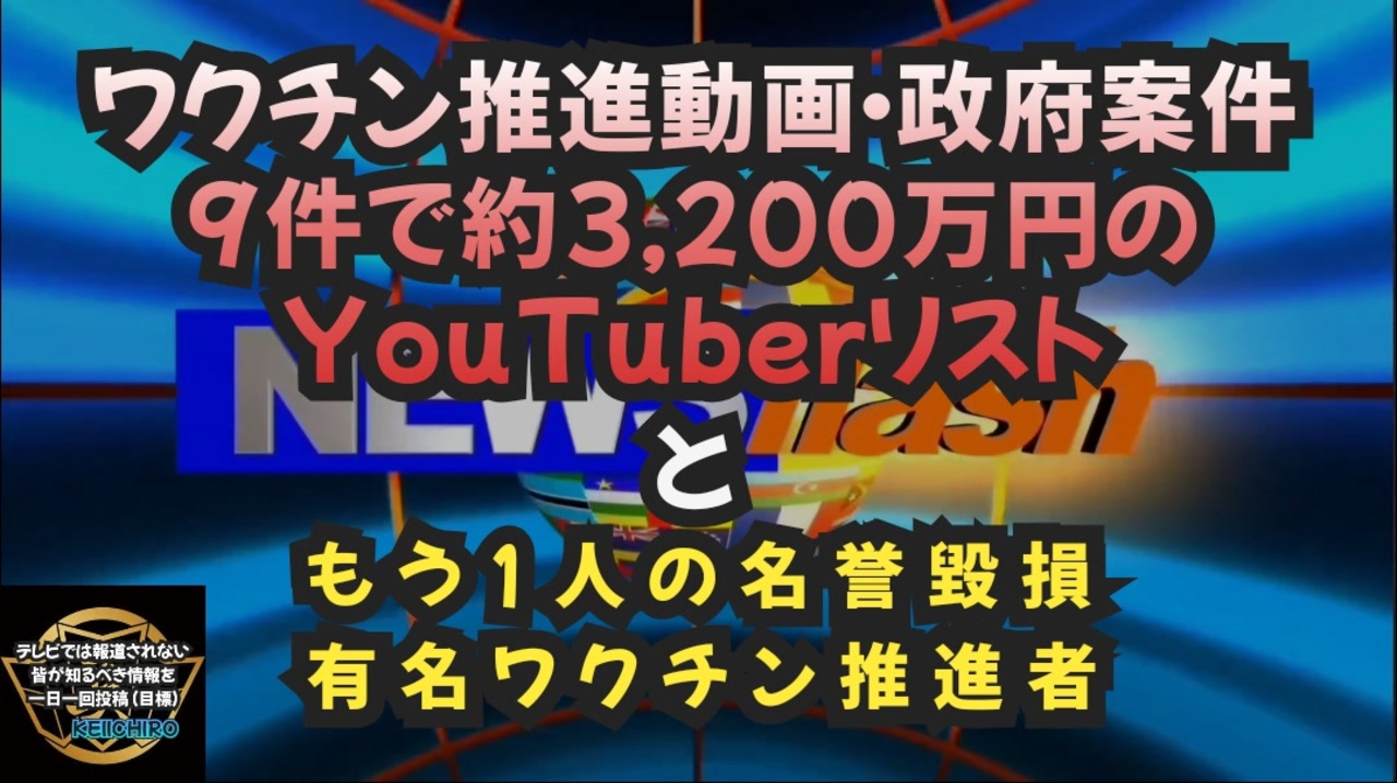 知念の次は、このお方、来ちゃう?<br><a href="https://x.gd/cIB0e" target="_blank" rel="noopener nofollow">https://x.gd/cIB0e</a><br><br><br>【拡散希望】大ニュース<br>忽那賢志、峰宗太郎、木下喬弘の名前が。<br><a href="https://x.gd/qIWzS" target="_blank" rel="noopener nofollow">https://x.gd/qIWzS</a><br><br><br>藤江さんのポストより引用<br><br>政府広報室→YouTuber等へ依頼した<br>約3,200万円の動画9本一覧(敬称略)<br><br>1 稲荷兄弟 <a href="https://x.gd/I9hR8" target="_blank" rel="noopener nofollow">https://x.gd/I9hR8</a><br><br>2 ゆきりぬ <a href="https://x.gd/T7qbw" target="_blank" rel="noopener nofollow">https://x.gd/T7qbw</a><br><br>3 さがらごうち <a href="https://x.gd/69xsW" target="_blank" rel="noopener nofollow">https://x.gd/69xsW</a><br><br>4 ゴウキブック <a href="https://x.gd/b6g63 " target="_blank" rel="noopener nofollow">https://x.gd/b6g63 </a><br><br>5 北の打ち師達 <a href="https://x.gd/lJuhc" target="_blank" rel="noopener nofollow">https://x.gd/lJuhc</a><br><br>6 フミカナ【FUMIYA to KANAMI】※動画は不明 おそらく削除or非公開<br><br>7 動画クリエイターボンボンTV×忽那賢志 <a href="https://x.gd/p6Yl6…" target="_blank" rel="noopener nofollow">https://x.gd/p6Yl6…</a><br><br>8 北の打ち師達×峰宗太郎 <a href="https://x.gd/GBdjX " target="_blank" rel="noopener nofollow">https://x.gd/GBdjX </a><br><br>9 ねお×木下喬弘 <a href="https://x.gd/vjraT" target="_blank" rel="noopener nofollow">https://x.gd/vjraT</a><br><br>※基本的には表(画像)をご参照ください。<br>表をもとに私が動画を探し、リンクを貼ってあります。もしかしたらリンク先の動画が今回の政府案件ではない可能性もあります。フミカナさんは、どの動画が分かりませんでした。<br><br>神谷宗幣参議院議員が動いてくださったので、このようにすぐ情報を入手することができました。<br><br><a href="https://x.gd/vJHIA" target="_blank" rel="noopener nofollow">https://x.gd/vJHIA</a><br><br><br>手を洗う救急医Taka 青山まさゆき Twitter 名誉毀損 新型コロナウイルス ワクチン 不妊 心筋炎 デマ 医者 医師 ワクチ ン接種後死亡 遺族 ワクチン被害 ワクチン死 ワクチン後遺症 人道に対する罪 神谷宗幣 政府 藤江さん 政府広報室 YouTuber <br>稲荷兄弟 ゆきりぬ さがらごうち ワクチン接種推進動画 ゴウキブック 北の打ち師達 フミカナ 動画クリエイター ボンボンTV 忽那賢志 峰宗太郎 ねお 木下喬弘<br><br><br><br />著作権、肖像権に配慮して作成しております。<br><br>◆気になったニュースの台本!?<br>メモ代わりに作った台本をそのままあげてます<br><a href="https://keiichiro8140.hatenablog.com/." target="_blank" rel="noopener nofollow">https://keiichiro8140.hatenablog.com/.</a><br><br><br>ここからはシリーズ紹介<br><br><br>◆ ワクチン解毒・デトックス<br><a href="https://x.gd/fZweg" target="_blank" rel="noopener nofollow">https://x.gd/fZweg</a><br><br>◆ウイリアム・マキス博士のがん治療(イベルメクチン・フェンベンダゾール等)<br><a href="https://x.gd/AtFYS" target="_blank" rel="noopener nofollow">https://x.gd/AtFYS</a><br><br>◆予防接種健康被害救済制度<br><a href="https://x.gd/0xK9x" target="_blank" rel="noopener nofollow">https://x.gd/0xK9x</a><br><br>◆気になったニュース #1501~<br><br>◆ 【ショートver】気になったニュース<br><a href="https://x.gd/7MxXC" target="_blank" rel="noopener nofollow">https://x.gd/7MxXC</a><br><br>◆ 気になったニュース #1001~<br><a href="https://x.gd/Lp8gv" target="_blank" rel="noopener nofollow">https://x.gd/Lp8gv</a><br><br>◆ 気になったニュース #501~<br><a href="https://x.gd/EmbS4" target="_blank" rel="noopener nofollow">https://x.gd/EmbS4</a><br><br>◆ 気になったニュース #1~#500<br><a href="https://x.gd/uPhNb" target="_blank" rel="noopener nofollow">https://x.gd/uPhNb</a><br><br>◆ X(旧Twitter)・テレグラムで気になった情報<br><a href="https://x.gd/YG6FT" target="_blank" rel="noopener nofollow">https://x.gd/YG6FT</a><br><br>◆ 日比谷5万人パレードデ⚪生放送アーカイブ動画<br><a href="https://x.gd/3CHJv" target="_blank" rel="noopener nofollow">https://x.gd/3CHJv</a><br><br>◆日比谷5万人パレード⚪モのマイリスト作ってみました<br><a href="https://nico.ms/mylist/76828848?ref=sp_other" target="_blank" rel="noopener nofollow">https://nico.ms/mylist/76828848?ref=sp_other</a><br><br>◆3.30 令和の百姓⚪⚪<br><a href="https://www.nicovideo.jp/series/511791?ref=garage_share_other" target="_blank" rel="noopener nofollow">https://www.nicovideo.jp/series/511791?ref=garage_share_other</a><br><br>◆ 及川幸久さんの【XNEWS】シリーズ<br><a href="https://x.gd/3k78K" target="_blank" rel="noopener nofollow">https://x.gd/3k78K</a><br><br>◆これまでの動画<a href="https://x.gd/sPXoJ" target="_blank" rel="noopener nofollow">https://x.gd/sPXoJ</a><br><br>◆もしも(BAN)の時のためのマイリンク集<a href="https://lit.link/K-16_News44" target="_blank" rel="noopener nofollow">https://lit.link/K-16_News44</a><br><br>