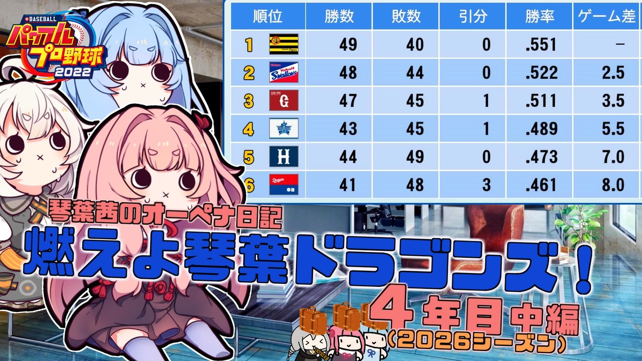 データ詳細 【パワプロ2022】琴葉茜のオーペナ日記『燃えよ琴葉ドラゴンズ!』04年目_中編(2026シーズン後半)