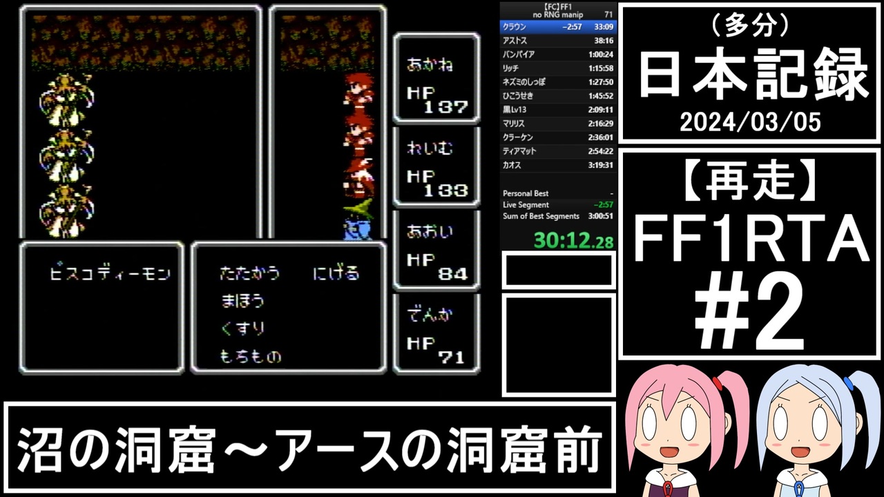 投稿可能サイズを超えてしまったので、30FPSに落として投稿しています・・・<br><br>(再走の解説動画化は)初投稿です<br><br>本体:ニューファミコン実機<br>計測開始:パーティーメンバーの決定から<br>計測終了:ラスボス撃破のテキスト表示まで<br><br>広告者(敬称略)<br>sing-t、井浚(いざらい)、名無しEX、内藤春人、匿名希望、SOCIUS、テイク、紫楼、にやとー、みかどいしへんおとねずみやまねこ、はんてん、tatibana、えっきゅう、唯桜、JAPANweb、マカヒキちゃん、yao-lung、如月吹雪、kapa、M・トマト、Precis、kfnkr、<a href="https://www.nicovideo.jp/watch/sm13869948" class="watch">sm13869948</a>、氷ノ雨、マーモ、GUS<br><br>© SQUARE ENIX<br>LOGO ILLUSTRATION:© YOSHITAKA AMANO<br>「記載されている会社名・製品名・システム名などは、各社の商標、または登録商標です。」<br>(C)1987,2021,2023 SQUARE ENIX CO., LTD. All Rights Reserved.<br><br>youtube→<a href="https://www.youtube.com/channel/UCOK2Q5Yl-LqZu2GWX98J7ew/" target="_blank" rel="noopener nofollow">https://www.youtube.com/channel/UCOK2Q5Yl-LqZu2GWX98J7ew/</a><br><br>ニコニコ動画→<a href="https://www.nicovideo.jp/user/93476079" target="_blank" rel="noopener nofollow">https://www.nicovideo.jp/user/93476079</a>