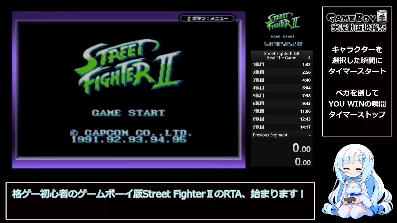 ゲームボーイ版 Street FighterⅡ を走らせていただいたので動画を作ってみました。<br>うぷ主は格ゲー初心者なので温かい目で見ていただけると幸いです。<br>解説動画の再生・広告・コメント・いいね・マイリストありがとうございます!<br>再走しました:<a href="https://www.nicovideo.jp/watch/sm43729194" class="watch">sm43729194</a><br>この動画は六波羅清昭様主催の<br>ボイスソフトゲームボーイ実況動画投稿祭に参加させていただいています<br>NORMALでキャラクターを選択した瞬間にタイマースタート<br>ベガを倒してYOU WINが出た瞬間にタイマーストップップ<br><br>・お借りしたもの<br>VOICEVOX:WhiteCUL<br>moiky様 低頭身WhiteCUL立ち絵素材<br>六波羅清昭様 ボイスソフトゲームボーイ実況動画投稿祭のロゴ<br><br>・ドラゴンクエストの画像について<br>この動画で利用している株式会社スクウェア・エニックスを代表とする共同著作者が権利を所有する著作物及びスギヤマ工房有限会社が権利を所有する楽曲の転載・配布は禁止いたします。<br>© ARMOR PROJECT/BIRD STUDIO/SQUARE ENIX All Rights Reserved.<br>© SUGIYAMA KOBO