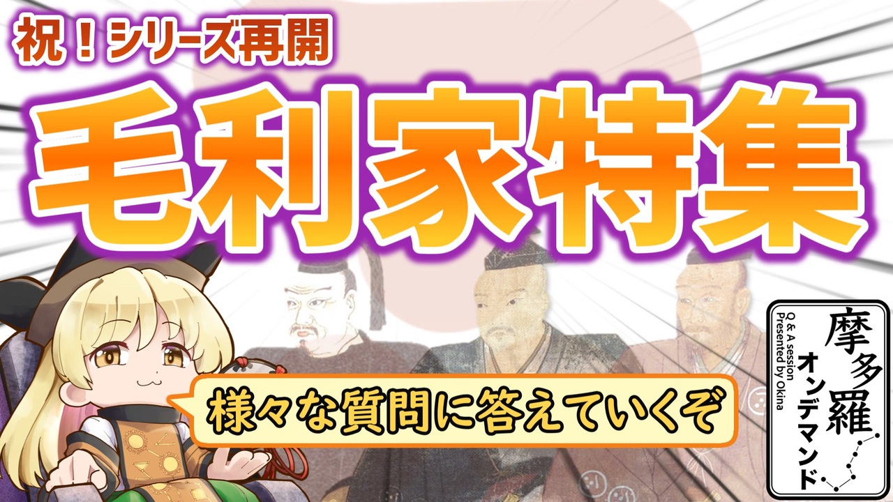 質問は下記URLから募集中!<br><a href="https://forms.gle/RDFBmdNcgcHAGGMQ8" target="_blank" rel="noopener nofollow">https://forms.gle/RDFBmdNcgcHAGGMQ8</a><br><br>初めましての人は初めまして、しかかくと申します。<br>この動画シリーズは皆様からの無茶ぶり(デマンド)に対し、できる限り答えていく新企画となります。質問の関係上、不確定な内容を含む場合もありますのでその点はご注意ください。<br><br>今回は毛利元就をはじめ、毛利家に関するいくつかの質問に答えています。<br><br>・参考文献<br>安芸高田市歴史民俗博物館「毛利興元」「ー名将の横顔ー毛利元就」<br>岸田 裕之『毛利元就 武威天下無双、下民憐愍の文徳は未だ』<br>光成 準治『小早川隆景・秀秋 消え候わんとて、光増すと申す』<br>光成 準治『毛利輝元 西国の儀任せ置かるの由候』<br>秋山 伸隆「毛利興元とその時代」<br>秋山 伸隆「毛利元就が結ぶ石見銀山と嚴島神社 」<br>和田 秀作「周防右田氏の相伝文書について」<br><br>・使用楽曲<br>白鷺ゆっきー「大和に散らばる不思議な森」(「やまとごはん」より)<br>騒音のない音楽「ニンニン忍者」<br>騒音のない音楽「キャノンボール」<br>騒音のない音楽「亡霊の女の子」<br>白鷺ゆっきー「太子の里~たちばな香る飛鳥」(「やまとごはん」より)<br><br>針の音楽(白鷺ゆっきー):<a href="https://www.youtube.com/channel/UCk8CLZqSoSyYEHph6z3bnDg" target="_blank" rel="noopener nofollow">https://www.youtube.com/channel/UCk8CLZqSoSyYEHph6z3bnDg</a><br>騒音のない音楽:<a href="https://noiselessworld.net/" target="_blank" rel="noopener nofollow">https://noiselessworld.net/</a><br><br>・使用立ち絵<br>摩多羅隠岐奈<br>(原作:東方project、 絵:真田源次郎ベル助 様)<br><a href="https://twitter.com/berusuke_sanada" target="_blank" rel="noopener nofollow">https://twitter.com/berusuke_sanada</a><br><br>・地図:国土地理院<br>・他イラスト:イラストAC<br>・効果音:効果音ラボ<br><br>Youtube; <a href="https://www.youtube.com/channel/UCRyZjTeQgxd8iXcL2P8vwNA" target="_blank" rel="noopener nofollow">https://www.youtube.com/channel/UCRyZjTeQgxd8iXcL2P8vwNA</a><br>Twitter; <a href="https://twitter.com/SquareDeerHorn" target="_blank" rel="noopener nofollow">https://twitter.com/SquareDeerHorn</a>