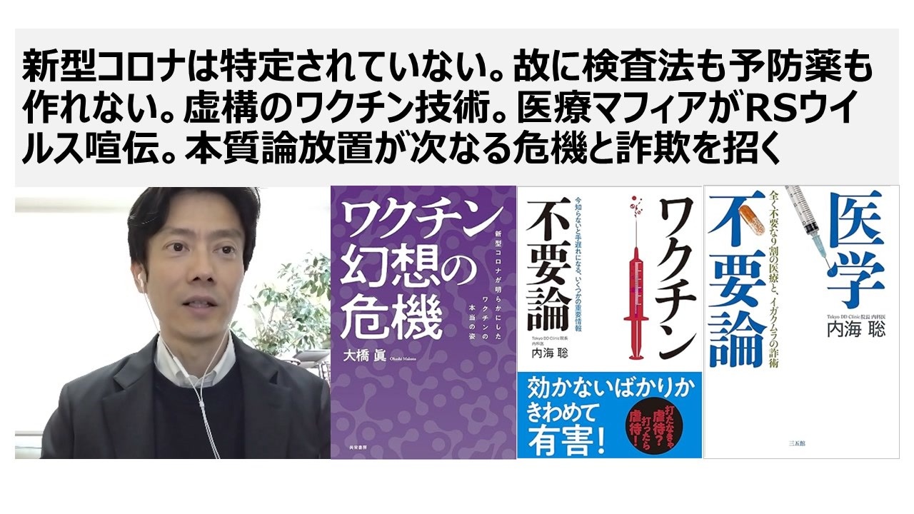 <strong>大橋眞先生の演説 2021年11月23日 18時横浜駅前</strong><br><a href="https://www.nicovideo.jp/watch/sm41139936" target="_blank" rel="noopener nofollow">https://www.nicovideo.jp/watch/sm41139936</a><br><br><strong>ワクチン幻想の危機 大橋眞先生 2023年6月14日 </strong><br><a href="https://www.amazon.co.jp/dp/B0C7KHFFDX" target="_blank" rel="noopener nofollow">https://www.amazon.co.jp/dp/B0C7KHFFDX</a><br><br>内海先生 ワクチン不要論 2018年5月29日<br><a href="https://www.amazon.co.jp/dp/B07DD7GNGR/" target="_blank" rel="noopener nofollow">https://www.amazon.co.jp/dp/B07DD7GNGR/</a><br><br>医学不要論 2015年4月17日<br><a href="https://www.amazon.co.jp/dp/B00W9B1MR8/" target="_blank" rel="noopener nofollow">https://www.amazon.co.jp/dp/B00W9B1MR8/</a><br><br>船瀬先生と内海先生の血液の闇は2014年8月の発売<br><a href="https://www.amazon.co.jp/dp/B00W9B1L2E/" target="_blank" rel="noopener nofollow">https://www.amazon.co.jp/dp/B00W9B1L2E/</a><br><br>効果がないどころが超有害 ワクチンの罠 2014年3月1日<br><a href="https://www.amazon.co.jp/dp/B07FDVS9LZ/" target="_blank" rel="noopener nofollow">https://www.amazon.co.jp/dp/B07FDVS9LZ/</a><br><br>オセロプロジェクト 402の自治体が死の手紙を送らず申告制に<br> <a href="https://vmed.jp/2699/" target="_blank" rel="noopener nofollow">https://vmed.jp/2699/</a><br><br>日本国独立宣言論 私は独立を宣言する 真田信秋(紙と電子書籍)<br><a href="https://www.amazon.co.jp/dp/B0CT86DX9G/" target="_blank" rel="noopener nofollow">https://www.amazon.co.jp/dp/B0CT86DX9G/</a><br><br>厚労省の狂犬病のサイト 1957年に撲滅済<br> <a href="https://www.mhlw.go.jp/bunya/kenkou/kekkaku-kansenshou10/" target="_blank" rel="noopener nofollow">https://www.mhlw.go.jp/bunya/kenkou/kekkaku-kansenshou10/</a><br><br> 海外で犬にかまれた人が66年の間に4人いただけで国内発生がゼロ。 犬は国内で一頭も66年発生していない。 <br><br>劇薬コロナワクチン、豚熱ワクチン、狂犬病ワクチン 日本で1957年に撲滅されたと厚労省が発表している狂犬病<br><a href="https://www.nicovideo.jp/watch/sm42859204" target="_blank" rel="noopener nofollow">https://www.nicovideo.jp/watch/sm42859204</a><br><br><strong>外務省の令和6年 予算の説明資料</strong><br><a href="https://www.mofa.go.jp/mofaj/files/100599986.pdf" target="_blank" rel="noopener nofollow">https://www.mofa.go.jp/mofaj/files/100599986.pdf</a><br><br>日本国独立宣言論 私は独立を宣言する! 真田信秋<br><a href="https://amzn.to/3D90lwx" target="_blank" rel="noopener nofollow">https://amzn.to/3D90lwx</a><br> <br>主権者命令書 主権破壊を許すな 売国傀儡日本政府を解体せよ<br><a href="https://amzn.to/49z51b5" target="_blank" rel="noopener nofollow">https://amzn.to/49z51b5</a><br> <br>マトリックス洗脳社会 グローバル企業ディストピア<br><a href="https://amzn.to/4g2YmZg" target="_blank" rel="noopener nofollow">https://amzn.to/4g2YmZg</a>
