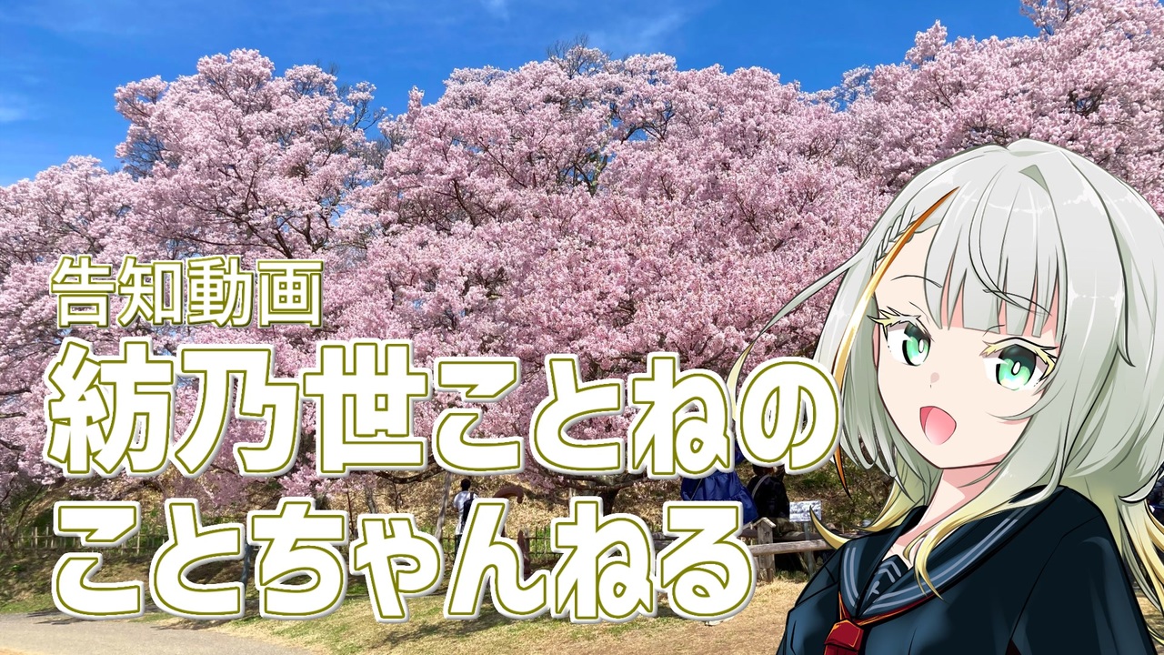 ご視聴ありがとうございます。<br>【紡乃世ことねのことちゃんねる】アシスタントの風見と申します。<br><br>この度、紡乃世詞音、双葉湊音、宮舞モカの3人が、<br>新しい動画チャンネルを立ち上げます。<br>その名も、<span style="color: #bf9000; font-size: 18px;">【紡乃世ことねのことちゃんねる】</span>です。<br><br>名所を観光したり、美味しいものを食べたり、アクティビティを体験したりと、<br>色々楽しく過ごす様子をお届けする動画チャンネルとなります。<br>本動画はその告知動画となります。<br><br>なお、初回動画が公開される5/10は紡乃世さんの誕生日です。<br>誕生日と共に、彼女達の門出を暖かく祝ってあげてください。<br><br><br><br>(動画の補足)<br>ご視聴ありがとうございます。Raybackです。<br>本動画シリーズは、詞音ちゃん達3人が<br>ニコニコ動画やYoutubeで楽しく動画配信をお届けする……「風」の動画となっています。<br>(風見さんは撮影、企画管理等のアシスタント役です)<br>今後は本シリーズをメインに動画投稿を続けていく予定です。<br><br>なお現時点で(Raybackとしての)Youtubeへの投稿予定はありませんが、<br>今後どうするかは、投稿本数が揃ってきた段階で考えていこうと思います。<br><br>(5/7追記)<br>本動画シリーズは個人的に制作しているものであり、<br>紡乃世詞音公式さま(<a href="https://www.nicovideo.jp/user/127921707" target="_blank" rel="noopener">user/127921707</a>)の活動とは一切関係はございません。<br>少し紛らわしいかもしれませんが、ご承知おきをお願い申し上げます。<br>(私の動画内の「紡乃世詞音」が配信活動のために動画チャンネルを立ち上げた、という形の動画です)<br>コメントにて気づきをくださった方、ありがとうございます。<br><br><br>【ニコニ・コモンズ登録作品以外のお借りしている素材】<br>BGM<br>ウサギ屋の音楽室( <a href="https://www.youtube.com/@chirico-music" target="_blank" rel="noopener nofollow">https://www.youtube.com/@chirico-music</a> )<br>・思春期ガールズ・オン・ザ・ラン!<br><br><br>動画画質 :1080p/60fps<br>中の人ついっt…えっくす(「・ω・)「:@Lapitaz