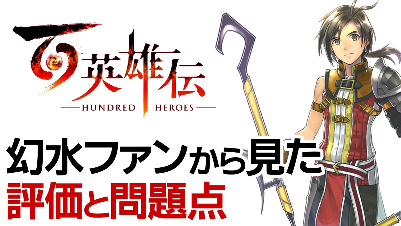 前回の動画にギフト・ニコニ広告して下さった方、ありがとうございました。<br>原則、「前編」「後編」合わせて毎回約30分を予定しています。<br><br><strong>▼『百英雄伝』のレビュー解説</strong><br>少し厳しいご指摘もさせて頂きましたが、クラファン支援によるゲーム開発の、良き前例のひとつになることを願って、今回この動画を作りました。<br><br><strong>▼関連動画</strong><br>■「幻想水滸伝Ⅰ」の考察動画<br>前編:<a href="https://www.nicovideo.jp/watch/sm36372956" class="watch">sm36372956</a><br>中編:<a href="https://www.nicovideo.jp/watch/sm36410370" class="watch">sm36410370</a><br>後編:<a href="https://www.nicovideo.jp/watch/sm36416067" class="watch">sm36416067</a><br><br>■「幻想水滸伝Ⅱ」の考察動画<br>前編:<a href="https://www.nicovideo.jp/watch/sm43664813" class="watch">sm43664813</a><br>後編:<a href="https://www.nicovideo.jp/watch/sm43705282" class="watch">sm43705282</a><br><br>■youtubeはこちら <a href="https://youtu.be/DTK06IuT664" target="_blank" rel="noopener nofollow">https://youtu.be/DTK06IuT664</a><br>■ゲーム夜話「X(旧:ツイッター」<a href="https://twitter.com/gameyawa" target="_blank" rel="noopener nofollow">https://twitter.com/gameyawa</a>