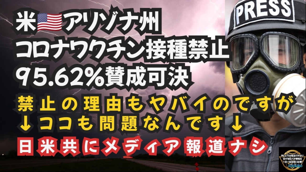 アリゾナ州共和党が新型コロナワクチンを「生物兵器」と宣言<br><br>彼らは知事に、法医学的分析のためにすべての新型コロ ナワクチン接種を禁止し押収するよう求めてい る。<br><br>アリゾナ州共和党は「ワクチン接種禁止」決議を可 決した。<br><br>これは大きなニュースですが、主流メディアでは何 も報道されていません。<br><br>ご存知のとおり、アリゾナ州共和党は「ワクチン禁止」決議を可決し、新型コロナワクチンを「生物兵器およびテクノロジー兵器」と宣言したばかりです。<br><br>なんと95.62%の票を得て、決議は可決されました。<br><br>ぜひシェアしてください。<br><br>主流のニュースではこれ に関する記事を一つも見たことがありません。<br><br><a href="https://twitter.com/PeterSweden7/status/1785420286667419993?t=iI7lndYoiu6_w8r8pVXsyQ&s=19" target="_blank" rel="noopener nofollow">https://twitter.com/PeterSweden7/status/1785420286667419993?t=iI7lndYoiu6_w8r8pVXsyQ&s=19</a><br><br><br>ゲートウェイパンディット<br><a href="https://www.thegatewaypundit.com/2024/04/breaking-arizona-republican-party-declares-covid-19-injections/" target="_blank" rel="noopener nofollow">https://www.thegatewaypundit.com/2024/04/breaking-arizona-republican-party-declares-covid-19-injections/</a><br><br>X<br><a href="https://twitter.com/gatewaypundit/status/1784736697655124045?t=ZVEGb2_vRHBQqnFpsyJJuA&s=19" target="_blank" rel="noopener nofollow">https://twitter.com/gatewaypundit/status/1784736697655124045?t=ZVEGb2_vRHBQqnFpsyJJuA&s=19</a><br><br>別サイト<br><a href="https://twitter.com/ma_pion/status/1785074712072327388?t=Rdo7q0bB_piNi5KcERrqpg&s=19" target="_blank" rel="noopener nofollow">https://twitter.com/ma_pion/status/1785074712072327388?t=Rdo7q0bB_piNi5KcERrqpg&s=19</a><br><br>DNA汚染<br><a href="https://twitter.com/salome8326/status/1680324928749568000?t=vn6uEQrg0QAZE7mRwFsxyw&s=19" target="_blank" rel="noopener nofollow">https://twitter.com/salome8326/status/1680324928749568000?t=vn6uEQrg0QAZE7mRwFsxyw&s=19</a><br><br><br>アリゾナ州 アメリカ 新型コロナワクチン ワクチン 新型コロナウイルス ワクチン禁止 生物兵器 テクノロジー兵器 ワクチン押収 ワクチン回収 ワクチン分析 法医学的分析 製薬会社 ファイザー モデルナ メディア 報道されない 人道に対する罪 ニュルンベルク裁判 ニュルンベルク綱領 フロリダ州保健局 mRNAワクチン ワクチン接種の停止 人間に対する継続的な実験 人体実験 インフォームドコンセント インフォームドコンセントの拒否 DNA汚染 DNA改変 遺伝子製剤 遺伝子改変ワクチン<br><br><br />著作権、肖像権に配慮して作成しております。<br><br>◆気になったニュースの台本!?<br>メモ代わりに作った台本をそのままあげてます<br><a href="https://keiichiro8140.hatenablog.com/." target="_blank" rel="noopener nofollow">https://keiichiro8140.hatenablog.com/.</a><br><br><br>ここからはシリーズ紹介<br><br><br>◆ ワクチン解毒・デトックス<br><a href="https://x.gd/fZweg" target="_blank" rel="noopener nofollow">https://x.gd/fZweg</a><br><br>◆ウイリアム・マキス博士のがん治療(イベルメクチン・フェンベンダゾール等)<br><a href="https://x.gd/AtFYS" target="_blank" rel="noopener nofollow">https://x.gd/AtFYS</a><br><br>◆予防接種健康被害救済制度<br><a href="https://x.gd/0xK9x" target="_blank" rel="noopener nofollow">https://x.gd/0xK9x</a><br><br>◆気になったニュース #1501~<br><br>◆ 【ショートver】気になったニュース<br><a href="https://x.gd/7MxXC" target="_blank" rel="noopener nofollow">https://x.gd/7MxXC</a><br><br>◆ 気になったニュース #1001~<br><a href="https://x.gd/Lp8gv" target="_blank" rel="noopener nofollow">https://x.gd/Lp8gv</a><br><br>◆ 気になったニュース #501~<br><a href="https://x.gd/EmbS4" target="_blank" rel="noopener nofollow">https://x.gd/EmbS4</a><br><br>◆ 気になったニュース #1~#500<br><a href="https://x.gd/uPhNb" target="_blank" rel="noopener nofollow">https://x.gd/uPhNb</a><br><br>◆ X(旧Twitter)・テレグラムで気になった情報<br><a href="https://x.gd/YG6FT" target="_blank" rel="noopener nofollow">https://x.gd/YG6FT</a><br><br>◆ 日比谷5万人パレードデ⚪生放送アーカイブ動画<br><a href="https://x.gd/3CHJv" target="_blank" rel="noopener nofollow">https://x.gd/3CHJv</a><br><br>◆日比谷5万人パレード⚪モのマイリスト作ってみました<br><a href="https://nico.ms/mylist/76828848?ref=sp_other" target="_blank" rel="noopener nofollow">https://nico.ms/mylist/76828848?ref=sp_other</a><br><br>◆3.30 令和の百姓⚪⚪<br><a href="https://www.nicovideo.jp/series/511791?ref=garage_share_other" target="_blank" rel="noopener nofollow">https://www.nicovideo.jp/series/511791?ref=garage_share_other</a><br><br>◆ 及川幸久さんの【XNEWS】シリーズ<br><a href="https://x.gd/3k78K" target="_blank" rel="noopener nofollow">https://x.gd/3k78K</a><br><br>◆これまでの動画<a href="https://x.gd/sPXoJ" target="_blank" rel="noopener nofollow">https://x.gd/sPXoJ</a><br><br>◆もしも(BAN)の時のためのマイリンク集<a href="https://lit.link/K-16_News44" target="_blank" rel="noopener nofollow">https://lit.link/K-16_News44</a><br><br>