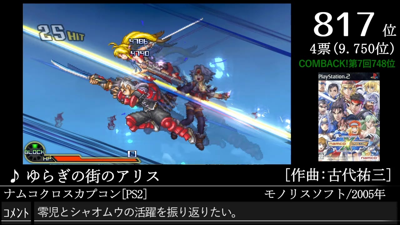 /\___/ヽ<br> /ノヽ ヽ、<br> / ⌒''ヽ,,,)ii(,,,r'''''' :::ヘ<br> | ン(○),ン <、(○)<::| |`ヽ、 ←1週間寝込んでた悔しさと<br> | `⌒,,ノ(、_, )ヽ⌒´ ::l |::::ヽl 561枚との激闘を深夜に投げつける輩<br> ヽ ヽ il´トェェェイ`lir;/.|:::::i |<br> /ヽ !l |,r-r-|l! /ヽ |:::::l |<br> / |^|ヽ、 `ニニ´一/|^|`,r-|:「 ̄<br> / | .| | .| ,U(ニ 、)ヽ<br> / | .| | .|人(_(ニ、ノノ<br>---------------------------------<br>スクリーンショット大募集!<br>詳しくは下記投稿フォームのご案内やスクショ状況スプレッドシート等をご確認下さい<br>↓<br><a href="https://ws.formzu.net/dist/S9500351/" target="_blank" rel="noopener nofollow">https://ws.formzu.net/dist/S9500351/</a><br><br>投票結果はこちら<br>↓<br><a href="https://w.atwiki.jp/gamemusicbest100/pages/10214.html" target="_blank" rel="noopener nofollow">https://w.atwiki.jp/gamemusicbest100/pages/10214.html</a><br><br>ご質問等ある際はこちらのページへコメント下さいませ<br>↓<br><a href="https://arutoneriko2.hatenablog.com/entry/2023/12/17/001849" target="_blank" rel="noopener nofollow">https://arutoneriko2.hatenablog.com/entry/2023/12/17/001849</a><br>---------------------------------<br><a href="https://www.nicovideo.jp/watch/sm43688514" class="watch">sm43688514</a>←Part7|今回|Part9→<a href="https://www.nicovideo.jp/watch/sm43759713" class="watch">sm43759713</a> <a href="https://www.nicovideo.jp/mylist/50993049" target="_blank" rel="noopener">mylist/50993049</a><br>---------------------------------<br>↓ショートカット↓<br><br>833位<a href="#" class="seekTime" data-seekTime="0:31" onclick="seekNicoPlayer('#0:31'); return false;">#0:31</a> 832位<a href="#" class="seekTime" data-seekTime="2:53" onclick="seekNicoPlayer('#2:53'); return false;">#2:53</a> 831位<a href="#" class="seekTime" data-seekTime="6:04" onclick="seekNicoPlayer('#6:04'); return false;">#6:04</a> 830位<a href="#" class="seekTime" data-seekTime="7:54" onclick="seekNicoPlayer('#7:54'); return false;">#7:54</a> 829位<a href="#" class="seekTime" data-seekTime="9:57" onclick="seekNicoPlayer('#9:57'); return false;">#9:57</a> 828位<a href="#" class="seekTime" data-seekTime="13:15" onclick="seekNicoPlayer('#13:15'); return false;">#13:15</a><br>827位<a href="#" class="seekTime" data-seekTime="16:17" onclick="seekNicoPlayer('#16:17'); return false;">#16:17</a> 826位<a href="#" class="seekTime" data-seekTime="19:38" onclick="seekNicoPlayer('#19:38'); return false;">#19:38</a> 825位<a href="#" class="seekTime" data-seekTime="21:59" onclick="seekNicoPlayer('#21:59'); return false;">#21:59</a> 824位<a href="#" class="seekTime" data-seekTime="28:43" onclick="seekNicoPlayer('#28:43'); return false;">#28:43</a> 822位<a href="#" class="seekTime" data-seekTime="33:32" onclick="seekNicoPlayer('#33:32'); return false;">#33:32</a> 822位<a href="#" class="seekTime" data-seekTime="35:26" onclick="seekNicoPlayer('#35:26'); return false;">#35:26</a><br>820位<a href="#" class="seekTime" data-seekTime="39:34" onclick="seekNicoPlayer('#39:34'); return false;">#39:34</a> 820位<a href="#" class="seekTime" data-seekTime="41:03" onclick="seekNicoPlayer('#41:03'); return false;">#41:03</a> 817位<a href="#" class="seekTime" data-seekTime="45:18" onclick="seekNicoPlayer('#45:18'); return false;">#45:18</a> 817位<a href="#" class="seekTime" data-seekTime="47:14" onclick="seekNicoPlayer('#47:14'); return false;">#47:14</a> 817位<a href="#" class="seekTime" data-seekTime="49:15" onclick="seekNicoPlayer('#49:15'); return false;">#49:15</a> 816位<a href="#" class="seekTime" data-seekTime="55:48" onclick="seekNicoPlayer('#55:48'); return false;">#55:48</a><br>812位<a href="#" class="seekTime" data-seekTime="58:10" onclick="seekNicoPlayer('#58:10'); return false;">#58:10</a> 812位<a href="#" class="seekTime" data-seekTime="60:31" onclick="seekNicoPlayer('#60:31'); return false;">#60:31</a> 812位<a href="#" class="seekTime" data-seekTime="62:59" onclick="seekNicoPlayer('#62:59'); return false;">#62:59</a> 812位<a href="#" class="seekTime" data-seekTime="65:01" onclick="seekNicoPlayer('#65:01'); return false;">#65:01</a> 811位<a href="#" class="seekTime" data-seekTime="66:38" onclick="seekNicoPlayer('#66:38'); return false;">#66:38</a> 808位<a href="#" class="seekTime" data-seekTime="70:15" onclick="seekNicoPlayer('#70:15'); return false;">#70:15</a><br>808位<a href="#" class="seekTime" data-seekTime="74:05" onclick="seekNicoPlayer('#74:05'); return false;">#74:05</a> 808位<a href="#" class="seekTime" data-seekTime="76:44" onclick="seekNicoPlayer('#76:44'); return false;">#76:44</a><br><br><a target="_blank" href="https://qa.nicovideo.jp/faq/show/19424?site_domain=default" style="font-size: 13px;color: #657586; text-decoration: underline; line-height: 1.4">この動画は投稿者によって修正されました</a>