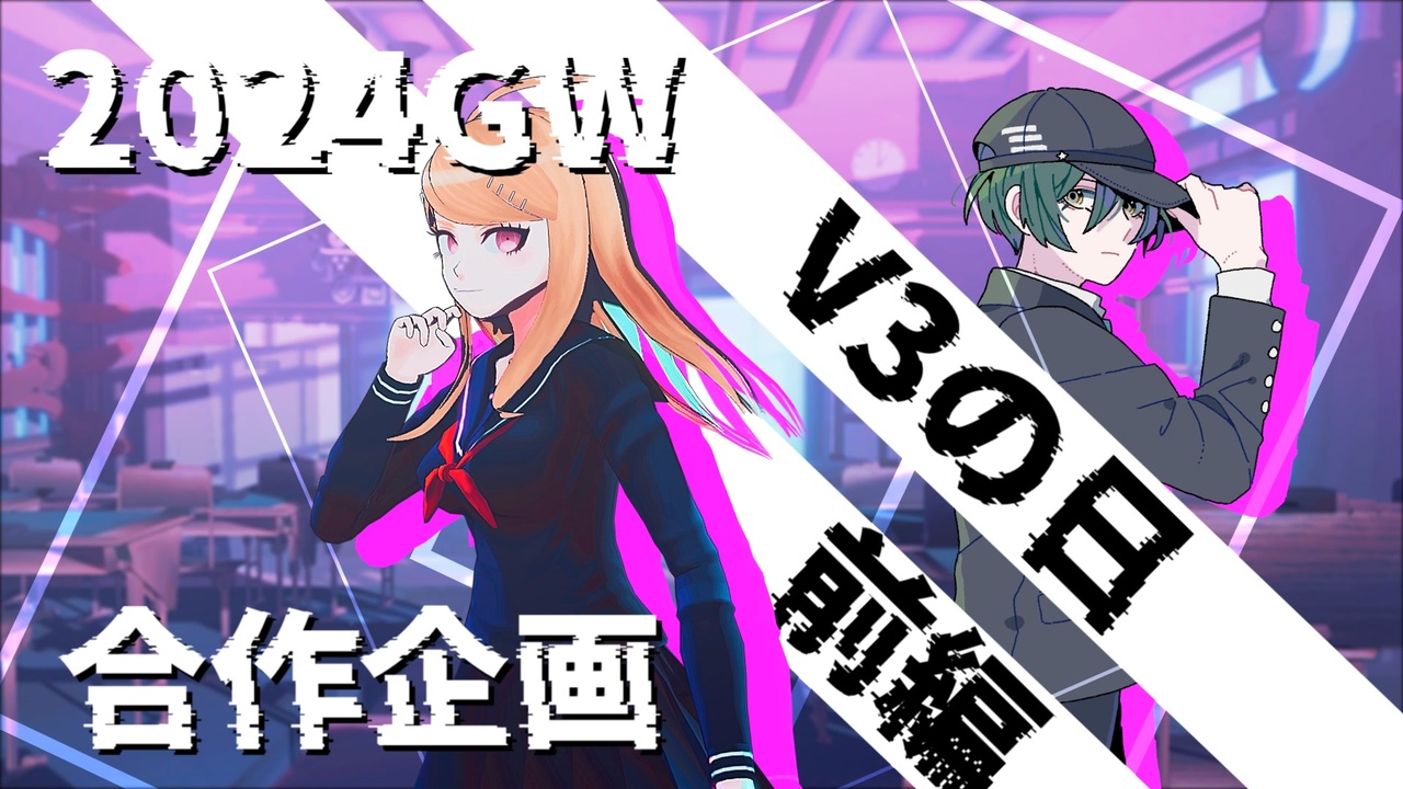 <br><span style="color: #9900ff; font-size: 24px;"><i>5月3日はV3の日!!!</i></span><br><br>という勢いでお送りする<span style="font-size: 18px;"><strong><i><u>総勢25名</u></i></strong></span>が作成した合作企画になります!!<br>V3クリア済みはみんな見て~~~!!!!!!!<br><br>- 企画概要 -<br>前編は各チャプターに焦点を当て、代表で6名の方に作成していただきました。<br>つまりV3本編がまるっとこの動画で楽しむことができます。ハンカチの準備はOK?<br><br>- 参加者 -<br>Prologue ルナ(主催) @li_417<br>Chapter1 ももかん @momokan715<br>Chapter2 夏古(past) @past5306<br>Chapter3 108 @toowa108d<br>Chapter4 民家 @mink_aaa0<br>Chapter5 つな @tnkn0151<br>Chapter6 mikao @mikao29<br><br><u>V3の日-後編-:<a href="https://www.nicovideo.jp/watch/sm43738267" class="watch">sm43738267</a> </u><br><br>- 注意 -<br>原作程度の流血や激しい明滅表現あるのでご注意下さい<br>この動画で誹謗中傷/CPコメ腐コメやお借りした物に対しての失礼な発言など、<br>他の方が見て嫌な気持ちになるコメントはNGです!<br>スクショをSNSで投稿するのはご遠慮下さい<br><br><span style="color: #ff0000;">転載禁止//Reprint is prohibited</span><br><br>お借りした物は後編の最後、またはコンテンツツリー(敬称略)にて<br>何か問題あれば主催まで!<br><br>追記)沢山の視聴、コメント、広告にいいね!など大感謝です!<br>繰り返し見てね!