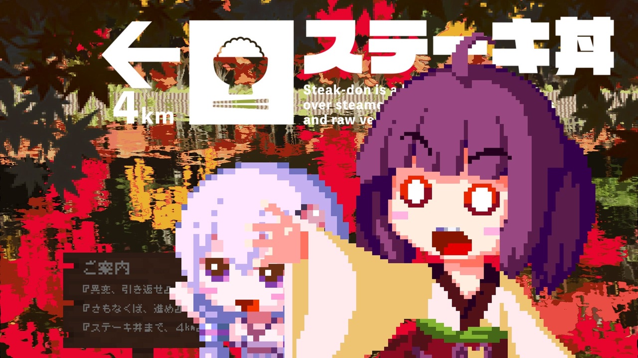 とある動画投稿者のセカイに閉じ込められてしまった...!!<br>脱出する方法は、ステーキ丼を食べること!?<br><br>*--*--*--*--*--*--*--*--*--*--*--*--*--*--*<br>ご案内<br>『異変、引き返せ』<br>『さもなくば、進め』<br>『ステーキ丼まで、4km』<br>*--*--*--*--*--*--*--*--*--*--*--*--*--*--*<br><br>「SHUFFLE!リメイク祭」 (<a href="https://www.nicovideo.jp/watch/sm43682800" class="watch">sm43682800</a>) 参加動画です。<br><br>■SHUFFLE!リメイク祭とは<br>動画投稿済の旅行先の素材を、他の投稿者に渡したら…<br>どんな動画に変身するのか気になりませんか?<br>そんな動画投稿企画を開催します!<br>(開催告知 <a href="https://www.nicovideo.jp/watch/sm43682800" class="watch">sm43682800</a> 投稿者コメより引用)<br><br>■ともえっくすの相方さん<br><br>幹久 <a href="https://www.nicovideo.jp/user/543186" target="_blank" rel="noopener">user/543186</a> さん<br><br>【第二回手抜き祭】まだ見ぬ世界に旅に出よう! Record:EX 紅葉狩りの旅・長野県/雲場池<br><a href="https://www.nicovideo.jp/watch/sm39518142" class="watch">sm39518142</a><br>