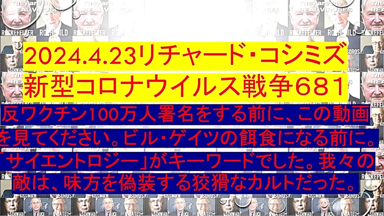 <span style="color: #cc4125;"><strong>「 テーマ : 新型コロナウイルス戦争 681 」</strong></span><br><br><span style="color: #ff0000;"><strong>「『 反ワクチン100万人署名 』をする前に、『 この動画を見てください 』。<br> 『 ビル・ゲイツ 』の『 餌食 』になる前に。『 サイエントロジー 』が『 キーワード 』でした。<br> 我々の『 真の敵 』は、『 味方を偽装 』する『 狡猾なカルト 』だった 」</strong></span><br><br> <span style="color: #0000ff;"><strong>◐『 イベルメクチン・アビガン服用後 』の体験談等をお寄せ下さい。RK</strong></span><br> <span style="color: #0000ff;"><strong>E-mail : richardkoshimizu@gmail.com</strong></span><br><br> <span style="color: #38761d;"><strong>◐ リチャード・コシミズ・チャンネル『⦅ ニコニコ チャンネル ⦆』</strong></span><br> <span style="color: #0000ff;"><strong><a href="https://ch.nicovideo.jp/richardkoshimizu" target="_blank" rel="noopener nofollow">https://ch.nicovideo.jp/richardkoshimizu</a></strong></span><br><br><span style="color: #38761d;"><strong> ◐ リチャード・コシミズ『 ニコニコ生放送⦅ LIVE ⦆』</strong></span><br> <span style="color: #0000ff;"><strong><a href="https://www.nicovideo.jp/user/120930363/live_programs" target="_blank" rel="noopener nofollow">https://www.nicovideo.jp/user/120930363/live_programs</a></strong></span><br><br><span style="color: #38761d;"><strong> ◐ リチャード・コシミズ『 Rumble 』公式 動画ギャラリー</strong></span><br> <span style="color: #0000ff;"><strong><a href="https://rumble.com/user/richardkoshimizu" target="_blank" rel="noopener nofollow">https://rumble.com/user/richardkoshimizu</a></strong></span><br><br>