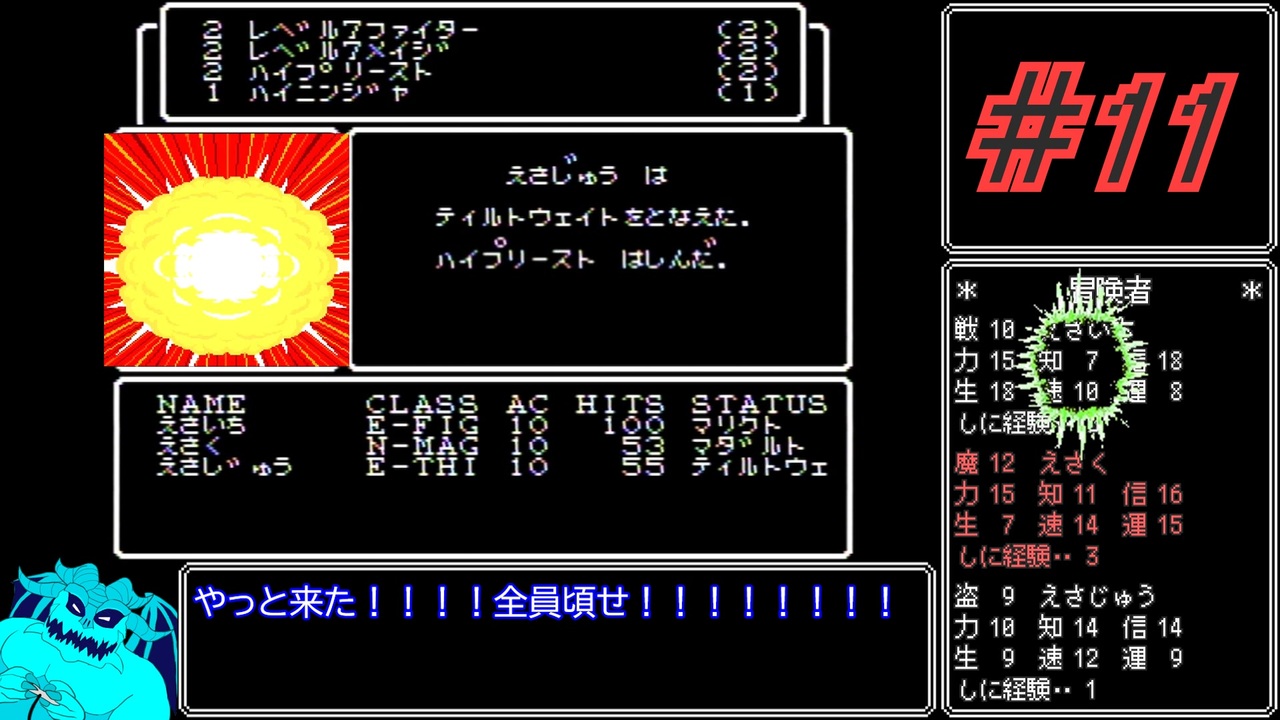精鋭の証=ブルーリボン=青=さいきょう!!<br>ファミコン版ウィザードリィを三人パーティ&ゆるめに縛ってプレイします。<br><br>*迷宮ルール*<br>1.三人組の冒険者パーティを作ってよい(迷宮内で全滅した者は人数に含めない)<br>2.メンバーに欠員が生じた場合のみ、仲間を募集してよい<br>3.ゲームをはじめからやり直すなら、冒険者を削除してもよい<br>4.冒険の中断を使った事がないパーティだけが地上に帰還する行為を許される<br>5.宝箱を見つけた場合、立ち去らなければどのように扱ってもよい<br>6.善悪混合パーティは、地下一階より下で出現する敵に自ら勝負を挑んでもよい<br>7.迷宮外に限り、何人でも自由にパーティを組んでよい<br>8.不幸な事故があった場合、絶対にリセットボタンは押さなくてよい<br><br>Part1→<a href="https://www.nicovideo.jp/watch/sm43517203" class="watch">sm43517203</a><br><br>Part10→<a href="https://www.nicovideo.jp/watch/sm43753629" class="watch">sm43753629</a><br>Part12→<a href="https://www.nicovideo.jp/watch/sm43776085" class="watch">sm43776085</a><br><br>無修正版:<a href="https://www.twitch.tv/videos/2095319106" target="_blank" rel="noopener nofollow">https://www.twitch.tv/videos/2095319106</a><br>R/T/A動画:<a href="https://www.nicovideo.jp/mylist/72204350" target="_blank" rel="noopener">mylist/72204350</a><br>備忘録動画:<a href="https://www.nicovideo.jp/mylist/76300676" target="_blank" rel="noopener">mylist/76300676</a><br><br /><br><u>****宣伝領域****</u><br><span style="color: #9900ff;">◯Twitch:たまにゆっくり音声で配信してます。見てネ!</span><br>→ <a href="https://www.twitch.tv/chari_demon" target="_blank" rel="noopener nofollow">https://www.twitch.tv/chari_demon</a><br><span style="color: #0000ff;">◯Twitter:たまに役に立たないことをつぶやく場所。見なくてイイです!</span><br>→ <a href="https://twitter.com/MatChariot" target="_blank" rel="noopener nofollow">https://twitter.com/MatChariot</a>