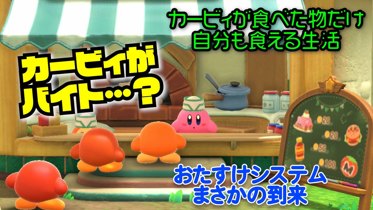 <strong>まさかの救済システム登場!?</strong><br><br><span style="color: #ff0000;"><strong>~ルール~</strong></span><br>・1日1ステージ分の食材で挑戦<br>・ステージ中に死んだらそこでその日は終了<br>・明らかな元ネタ食材がわかる形状の物or敵のみ現実で食える<br>・カービィが飲み込んだものを全て食べる必要はない<br>・GETした食材はその日だけ食べられる(別日には持ち越せない)<br>・無限沸きの敵or食材があったら最初の1体のみ有効<br>・食材は調理してよい(調味料自由)<br>・水だけはOKとする<br><br><strong>【次】 下のシリーズ欄から飛んでね<br>【投稿動画まとめ】 <a href="https://www.nicovideo.jp/mylist/32090282" target="_blank" rel="noopener">mylist/32090282</a></strong><br><br><span style="color: #1155cc;"><strong>▼投稿者情報▼</strong></span><br>【Twitter】<a href="https://twitter.com/wakou2525" target="_blank" rel="noopener nofollow">https://twitter.com/wakou2525</a><br>【連絡先】wakou2525otayori@yahoo.co.jp