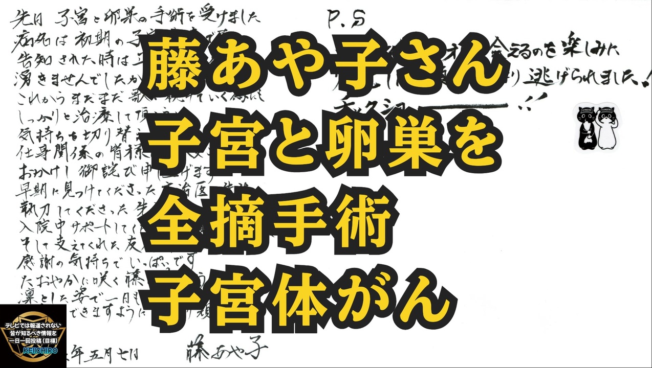 3回接種、藤あや子さん。<br>「子宮体がん」を公表 子宮と卵巣を全摘手術へ<br><a href="https://x.gd/r0Rza" target="_blank" rel="noopener nofollow">https://x.gd/r0Rza</a><br><br>ご報告<br><a href="https://x.gd/Cyisg" target="_blank" rel="noopener nofollow">https://x.gd/Cyisg</a><br><br><br>女優の西丸優子さん(43)<br>子宮体癌になり Xmasに子宮と両卵巣の全摘出、リンパ節郭清手術を2024年2月7日に報告<br>3月13日 1回目の抗がん剤治療を終え、現在も治療中<br>コロナワクチンは3回打っているそうだ…<br><a href="https://x.gd/3QPsQ" target="_blank" rel="noopener nofollow">https://x.gd/3QPsQ</a><br><br>ご報告<br><a href="https://x.gd/Qi729" target="_blank" rel="noopener nofollow">https://x.gd/Qi729</a><br><br>記事<br><a href="https://x.gd/DAypN" target="_blank" rel="noopener nofollow">https://x.gd/DAypN</a><br><br><br>何が起こっても因果関係評価不能… だが接種者の寿命は確実に縮まっている… 全身のどこでスパイクタンパクを製造するか分からない、まさにロシアンルーレット…<br><br>病気の玉手箱<br><a href="https://x.gd/F4QTo" target="_blank" rel="noopener nofollow">https://x.gd/F4QTo</a><br><br><br>アストラゼネカ<br>コロナワクチン市場撤退<br><a href="https://x.gd/fs8Z4" target="_blank" rel="noopener nofollow">https://x.gd/fs8Z4</a><br><br>要翻訳<br><a href="https://x.gd/MOcbo" target="_blank" rel="noopener nofollow">https://x.gd/MOcbo</a><br><br><br><br>新型コロナウイルス ワクチン 藤あや子 子宮体がん ワクチン3回接種 西丸優子 子宮 卵巣 全摘出 リンパ節郭清手術 アストラゼネカ コロナワクチン 市場撤退 ワクチン薬害 ワクチン被害 ワクチン後遺症 スパイクタンパク mRNAワクチン 脂質ナノ粒子 シュードウリジン がん促進 乳がん 卵巣がん 前立腺がん <br><br><br><br> <br><br />著作権、肖像権に配慮して作成しております。<br><br>◆気になったニュースの台本!?<br>メモ代わりに作った台本をそのままあげてます<br><a href="https://keiichiro8140.hatenablog.com/." target="_blank" rel="noopener nofollow">https://keiichiro8140.hatenablog.com/.</a><br><br><br>ここからはシリーズ紹介<br><br><br>◆ ワクチン解毒・デトックス<br><a href="https://x.gd/fZweg" target="_blank" rel="noopener nofollow">https://x.gd/fZweg</a><br><br>◆ウイリアム・マキス博士のがん治療(イベルメクチン・フェンベンダゾール等)<br><a href="https://x.gd/AtFYS" target="_blank" rel="noopener nofollow">https://x.gd/AtFYS</a><br><br>◆予防接種健康被害救済制度<br><a href="https://x.gd/0xK9x" target="_blank" rel="noopener nofollow">https://x.gd/0xK9x</a><br><br>◆気になったニュース #1501~<br><br>◆ 【ショートver】気になったニュース<br><a href="https://x.gd/7MxXC" target="_blank" rel="noopener nofollow">https://x.gd/7MxXC</a><br><br>◆ 気になったニュース #1001~<br><a href="https://x.gd/Lp8gv" target="_blank" rel="noopener nofollow">https://x.gd/Lp8gv</a><br><br>◆ 気になったニュース #501~<br><a href="https://x.gd/EmbS4" target="_blank" rel="noopener nofollow">https://x.gd/EmbS4</a><br><br>◆ 気になったニュース #1~#500<br><a href="https://x.gd/uPhNb" target="_blank" rel="noopener nofollow">https://x.gd/uPhNb</a><br><br>◆ X(旧Twitter)・テレグラムで気になった情報<br><a href="https://x.gd/YG6FT" target="_blank" rel="noopener nofollow">https://x.gd/YG6FT</a><br><br>◆ 日比谷5万人パレードデ⚪生放送アーカイブ動画<br><a href="https://x.gd/3CHJv" target="_blank" rel="noopener nofollow">https://x.gd/3CHJv</a><br><br>◆日比谷5万人パレード⚪モのマイリスト作ってみました<br><a href="https://nico.ms/mylist/76828848?ref=sp_other" target="_blank" rel="noopener nofollow">https://nico.ms/mylist/76828848?ref=sp_other</a><br><br>◆3.30 令和の百姓⚪⚪<br><a href="https://www.nicovideo.jp/series/511791?ref=garage_share_other" target="_blank" rel="noopener nofollow">https://www.nicovideo.jp/series/511791?ref=garage_share_other</a><br><br>◆ 及川幸久さんの【XNEWS】シリーズ<br><a href="https://x.gd/3k78K" target="_blank" rel="noopener nofollow">https://x.gd/3k78K</a><br><br>◆これまでの動画<a href="https://x.gd/sPXoJ" target="_blank" rel="noopener nofollow">https://x.gd/sPXoJ</a><br><br>◆もしも(BAN)の時のためのマイリンク集<a href="https://lit.link/K-16_News44" target="_blank" rel="noopener nofollow">https://lit.link/K-16_News44</a><br><br>