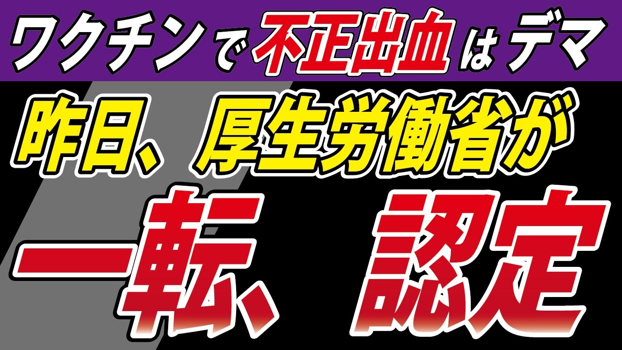 厚生労働省が不正出血を健康被害救済認定した資料はこちら<br>❑第170回 疾病・障害認定審査会 感染症・予防接種審査分科会<br><a href="https://www.mhlw.go.jp/stf/newpage_40084.html" target="_blank" rel="noopener nofollow">https://www.mhlw.go.jp/stf/newpage_40084.html</a><br><br>―――――――――――――――――――――――――――――――<br><br>❑「世界を欺いた〇〇〇〇〇〇〇」(宝島社新書)<br><a href="https://amzn.to/3ymDfgr" target="_blank" rel="noopener nofollow">https://amzn.to/3ymDfgr</a><br>鳥集徹(著) 闇のダディ(著) 藤江成光(著)←私<br><br>―――――――――――――――――――――――――――――――<br><br>❑藤江の「真の」日本人増加計画(ニコニコチャンネル+)<br><a href="https://nicochannel.jp/fujie/" target="_blank" rel="noopener nofollow">https://nicochannel.jp/fujie/</a><br>※毎月第3土曜日の夜、定例ライブ配信!<br><br><br>❏藤江の活動を支援していただける方向け<br>【藤江支援口座】のご案内<br>住信SBIネット銀行 ミカン支店(店番号103)<br>口座番号 3107694<br>口座名義 フジエ マサミツ<br><br>――――――――――――――――――――――――――――――<br><br>日本の人口増加を目指す男、藤江です!【メインチャンネル】<br><a href="https://www.youtube.com/c/JINKOUZOUKA/" target="_blank" rel="noopener nofollow">https://www.youtube.com/c/JINKOUZOUKA/</a><br><br>地域と日本の存続のためニ!【藤江2ndチャンネル】<br><a href="https://www.youtube.com/channel/UCfBh4rv5UT7D-qR6KsoZrsA" target="_blank" rel="noopener nofollow">https://www.youtube.com/channel/UCfBh4rv5UT7D-qR6KsoZrsA</a><br><br>今こそ!三千年の底力【藤江3rdチャンネル】<br><a href="https://www.youtube.com/channel/UC5Yrsm8-X8nZj4uKgvE7CBw" target="_blank" rel="noopener nofollow">https://www.youtube.com/channel/UC5Yrsm8-X8nZj4uKgvE7CBw</a><br><br>四海兄弟【藤江4thチャンネル】<br><a href="https://www.youtube.com/channel/UCiyJNO57quj80Ysy7nOABvA" target="_blank" rel="noopener nofollow">https://www.youtube.com/channel/UCiyJNO57quj80Ysy7nOABvA</a><br><br>五穀豊穣【藤江5thチャンネル】<br><a href="https://www.youtube.com/channel/UCptMJCoKYghfew5tDzoEqHQ" target="_blank" rel="noopener nofollow">https://www.youtube.com/channel/UCptMJCoKYghfew5tDzoEqHQ</a><br><br>六根清浄【藤江6thチャンネル】<br><a href="https://www.youtube.com/@FUJIE6th" target="_blank" rel="noopener nofollow">https://www.youtube.com/@FUJIE6th</a><br><br>七生報国【藤江7thチャンネル】<br><a href="https://www.youtube.com/@fujie7th" target="_blank" rel="noopener nofollow">https://www.youtube.com/@fujie7th</a><br><br>藤江のX(Twitter)<br><a href="https://twitter.com/JINKOUZOUKA_jp" target="_blank" rel="noopener nofollow">https://twitter.com/JINKOUZOUKA_jp</a><br><br>藤江のニコニコ動画<br><a href="https://www.nicovideo.jp/user/5457748" target="_blank" rel="noopener nofollow">https://www.nicovideo.jp/user/5457748</a>