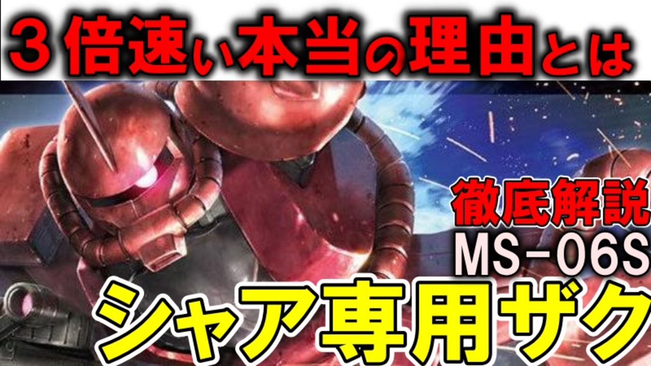【シャア専用ザクII解説】MS-06Sシャア専用ザクII。この性能で本当に3倍出せる?シャアが速い理由を徹底解説【機動戦士ガンダム】<br><br>機動戦士ガンダムなどに登場するMS、MS-06Sシャア専用ザクIIの性能を解説しながら、そんなにザクと違うのか、どうやって3倍出しているのかを解説、考察していきます。<br><br>今回は解説が多めです。<br><br>以前のフロンタル解説でもうやったつもりになっていたシャア専用ザクの解説動画です。<br>でも改めて調べ直したら、強いだけじゃなく機体にも優しい乗り方をしていて本当に凄いパイロットだなと痛感しました。<br><br>現在連載中の小説はこちら:<br>異世界アイドル革命!死に戻り悪役令嬢は閃いた『こいつら全員アイドルにしてしまおう!』<br><a href="https://kakuyomu.jp/works/16817330662598051943" target="_blank" rel="noopener nofollow">https://kakuyomu.jp/works/16817330662598051943</a><br><br>質問、などありましたらこちらにも<br><a href="https://twitter.com/@i4S0LHspdgzBTor" target="_blank" rel="noopener nofollow">https://twitter.com/@i4S0LHspdgzBTor</a><br><br>清見元康名義でカクヨム、小説家になろう、たいあっぷなどに投稿しています。<br>もし良ければ応援お願いしますm(_ _)m<br><a href="https://kakuyomu.jp/users/GariD/works" target="_blank" rel="noopener nofollow">https://kakuyomu.jp/users/GariD/works</a><br><br>以前の作品(短編シリアス):<br>転生した厄災の大魔女はやがて聖女と呼ばれる<br><a href="https://ncode.syosetu.com/n0827ha/" target="_blank" rel="noopener nofollow">https://ncode.syosetu.com/n0827ha/</a><br><br>A.I.VOICE:結月ゆかり<br>VOICEVOX:ずんだもん<br><br>使用させていただいたずんだもん:<br>ずんだもん mini Deluxe(立ち絵) ver1.2<br><a href="https://seiga.nicovideo.jp/seiga/im10794509" target="_blank" rel="noopener nofollow">https://seiga.nicovideo.jp/seiga/im10794509</a><br><br>いつも広告、コメントありがとうございます。<br>励みになりますm(_ _)m<br>