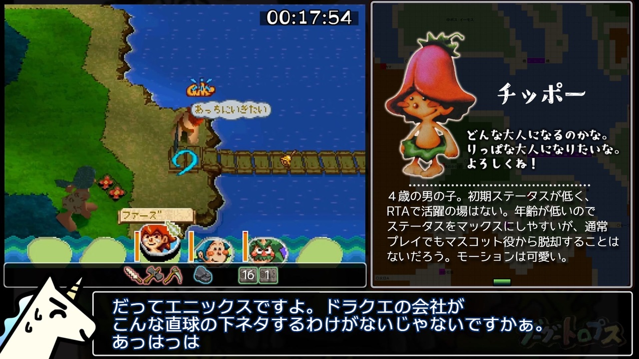プレイステーションソフト『グーグートロプス 』のany%RTA、part.2です。<br>X(Twitter)でのエゴサーチ用に『#ユニコンRTA』というハッシュタグを使ってみることにしました。<br>良かったら感想など呟いてください!<br><br>part.1→<a href="https://www.nicovideo.jp/watch/sm43700790" class="watch">sm43700790</a><br>part.3→<a href="https://www.nicovideo.jp/watch/sm43832200" class="watch">sm43832200</a>。進捗はTwitter(現:X)@Nagisa381rtaで<br><br>走ったRTAのpart.1まとめ→<a href="https://www.nicovideo.jp/mylist/73222388" target="_blank" rel="noopener">mylist/73222388</a><br>RTA全部まとめ→<a href="https://www.nicovideo.jp/mylist/72786007" target="_blank" rel="noopener">mylist/72786007</a><br><br><u>▽プレイ環境</u><br>PlayStation2 SCPH-50000実機<br>HDMI出力:Pound Tchnology HD Link Cable for PS2&PS1<br>キャプチャーボード:TreasLin HSV321<br>録画ソフト:OBS Studio<br><br><u>▽レギュレーション</u><br>タイマー開始:ファーズの名前入力画面で『はい』を押した瞬間<br>タイマー終了:ボスボスマンモスを倒して画面が暗転した瞬間<br><br>〇Twitter(現:X)→@Nagisa381rta<br><br>〇Youtubeでも活動しているのでチャンネル登録よろしくです<br>→<a href="https://www.youtube.com/channel/UCTNItIdl_gYr9N2j0PO-82g" target="_blank" rel="noopener nofollow">https://www.youtube.com/channel/UCTNItIdl_gYr9N2j0PO-82g</a><br><br>〇欲しいものリスト<br>→<a href="https://www.amazon.jp/hz/wishlist/ls/1S72L30BVRILK?ref_=wl_share" target="_blank" rel="noopener nofollow">https://www.amazon.jp/hz/wishlist/ls/1S72L30BVRILK?ref_=wl_share</a><br><br>〇今までの調査結果や攻略法をまとめた個人wiki(矛盾)を作りました<br>→<a href="https://w.atwiki.jp/nagisa381rta/" target="_blank" rel="noopener nofollow">https://w.atwiki.jp/nagisa381rta/</a><br><br>――――――――――――権利表記――――――――――――<br>© SQUARE ENIX