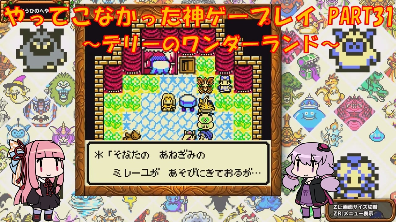 Switch版 テリーのワンダーランドレトロをプレイ<br>ゆかりさんはメジャーじゃないゲームをやる俺カッケー族だったのでドラクエをやったことがありませんでした(DSのⅤ以外)<br><br>茜:お姉さま何してるんでせうか?<br>ゆ:遊びに<br><br>PART1:<a href="https://www.nicovideo.jp/watch/sm43525709" target="_blank" rel="noopener nofollow">https://www.nicovideo.jp/watch/sm43525709</a><br><br>各DQシリーズ第1回リンク<br>DQ1 PART1:<a href="https://www.nicovideo.jp/watch/sm41819145" target="_blank" rel="noopener nofollow">https://www.nicovideo.jp/watch/sm41819145</a><br>DQ2 PART1:<a href="https://www.nicovideo.jp/watch/sm41895278" target="_blank" rel="noopener nofollow">https://www.nicovideo.jp/watch/sm41895278</a><br>DQ3 PART1:<a href="https://www.nicovideo.jp/watch/sm42034398" target="_blank" rel="noopener nofollow">https://www.nicovideo.jp/watch/sm42034398</a><br>DQ4 PART1:<a href="https://www.nicovideo.jp/watch/sm42520974" target="_blank" rel="noopener nofollow">https://www.nicovideo.jp/watch/sm42520974</a><br>DQ5 PART1:<a href="https://www.nicovideo.jp/watch/sm42848575" target="_blank" rel="noopener nofollow">https://www.nicovideo.jp/watch/sm42848575</a><br>DQ6 PART1:<a href="https://www.nicovideo.jp/watch/sm43080264" target="_blank" rel="noopener nofollow">https://www.nicovideo.jp/watch/sm43080264</a><br><br>動画内で使用させていただいた素材<br>【イラスト】<br>結月ゆかり→山栗鼠様:<a href="https://seiga.nicovideo.jp/seiga/im5354179" target="_blank" rel="noopener nofollow">https://seiga.nicovideo.jp/seiga/im5354179</a><br>琴葉茜→山栗鼠様:<a href="https://seiga.nicovideo.jp/seiga/im5342445" target="_blank" rel="noopener nofollow">https://seiga.nicovideo.jp/seiga/im5342445</a><br><br>【音声】<br>A.I.Voice:琴葉茜<br><a href="https://aivoice.jp/product/kotonoha/" target="_blank" rel="noopener nofollow">https://aivoice.jp/product/kotonoha/</a><br><br>A.I.Voice:結月ゆかり<br><a href="https://aivoice.jp/product/yukari/" target="_blank" rel="noopener nofollow">https://aivoice.jp/product/yukari/</a><br><br>【その他素材】<br>効果音ラボ様:<a href="https://soundeffect-lab.info/" target="_blank" rel="noopener nofollow">https://soundeffect-lab.info/</a><br>いらすとや様:<a href="https://www.irasutoya.com/" target="_blank" rel="noopener nofollow">https://www.irasutoya.com/</a><br>甘茶の音楽工房様:<a href="https://amachamusic.chagasi.com/image_bukimi.html" target="_blank" rel="noopener nofollow">https://amachamusic.chagasi.com/image_bukimi.html</a><br>等<br><br>この動画で利用している株式会社スクウェア・エニックスを代表とする共同著作者が権利を所有する著作物及びスギヤマ工房有限会社が権利を所有する楽曲の転載・配布は禁止いたします。<br>© ARMOR PROJECT/BIRD STUDIO/SQUARE ENIX All Rights Reserved.<br>© SUGIYAMA KOBO