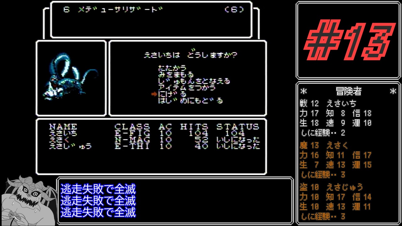 素早さちょうだい!(足腰が弱くなる音<br>ファミコン版ウィザードリィを三人パーティ&ゆるめに縛ってプレイします。<br><br>*迷宮ルール*<br>1.三人組の冒険者パーティを作ってよい(迷宮内で全滅した者は人数に含めない)<br>2.メンバーに欠員が生じた場合のみ、仲間を募集してよい<br>3.ゲームをはじめからやり直すなら、冒険者を削除してもよい<br>4.冒険の中断を使った事がないパーティだけが地上に帰還する行為を許される<br>5.宝箱を見つけた場合、立ち去らなければどのように扱ってもよい<br>6.善悪混合パーティは、地下一階より下で出現する敵に自ら勝負を挑んでもよい<br>7.迷宮外に限り、何人でも自由にパーティを組んでよい<br>8.不幸な事故があった場合、絶対にリセットボタンは押さなくてよい<br><br>Part1→<a href="https://www.nicovideo.jp/watch/sm43517203" class="watch">sm43517203</a><br><br>Part12→<a href="https://www.nicovideo.jp/watch/sm43776085" class="watch">sm43776085</a><br>Part14→<a href="https://www.nicovideo.jp/watch/sm43808585" class="watch">sm43808585</a><br><br>無修正(配信)版:<a href="https://www.twitch.tv/videos/2100105648" target="_blank" rel="noopener nofollow">https://www.twitch.tv/videos/2100105648</a><br>R/T/A動画:<a href="https://www.nicovideo.jp/mylist/72204350" target="_blank" rel="noopener">mylist/72204350</a><br>備忘録動画:<a href="https://www.nicovideo.jp/mylist/76300676" target="_blank" rel="noopener">mylist/76300676</a><br><br><br /><br><u>****宣伝領域****</u><br><span style="color: #9900ff;">◯Twitch:たまにゆっくり音声で配信してます。見てネ!</span><br>→ <a href="https://www.twitch.tv/chari_demon" target="_blank" rel="noopener nofollow">https://www.twitch.tv/chari_demon</a><br><span style="color: #0000ff;">◯Twitter:たまに役に立たないことをつぶやく場所。見なくてイイです!</span><br>→ <a href="https://twitter.com/MatChariot" target="_blank" rel="noopener nofollow">https://twitter.com/MatChariot</a>