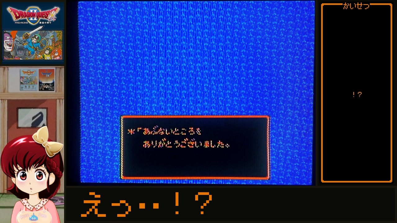 今回は【フラットタイプ】のブラウン管テレビで撮影してみました。<br>青一面の部分があるとやっぱりモアレが酷いんだけど、それ以外の時はいい感じで撮れたかな?とも。<br><br>曲面タイプと平面タイプの違いが見比べれるように前回 (<a href="https://www.nicovideo.jp/watch/sm41307043" class="watch">sm41307043</a>) とほぼ同じ条件で再走したんだけど、前回とはまた違う見どころが撮れてよかったと思った(ご満悦)<br> <br><span style="color: #38761d;">//備考</span><br>【ブラウン管テレビ】でのファミコンの映像を動画で綺麗に遺せないかな~って画策している動画でっす。<br>(※1080pでの視聴を前提にしてるので、1920x1080未満のサイズだとモアレが酷くなる可能性がありまぁす)<br>(環境: 平面ブラウン管テレビ+RF接続)<br> <br><span style="color: #38761d;">//参考文献</span><br>めぞん一刻 <a href="https://amzn.to/3ojH2WC" target="_blank" rel="noopener nofollow">https://amzn.to/3ojH2WC</a> <a href="https://amzn.to/3IVRFJd" target="_blank" rel="noopener nofollow">https://amzn.to/3IVRFJd</a><br>機動戦士Ζガンダム <a href="https://www.amazon.co.jp/gp/video/detail/B00FYLY1PK/" target="_blank" rel="noopener nofollow">https://www.amazon.co.jp/gp/video/detail/B00FYLY1PK/</a><br>ベ↓ガ↑ <a href="https://www.nicovideo.jp/watch/sm9641772" class="watch">sm9641772</a><br> <br><span style="color: #b45f06;">//ゲームやりこみ学会 新作動画発表会2024春</span><br>タイミングが合ったので「ゲームやりこみ学会 新作動画発表会2024春」に参加しておきました。<br>「#ゲームやりこみ学会 」のタグをつけて動画を紹介したらノートパソコンが当たるカモだそうです!<br><a href="https://x.com/game_yarikomi/status/1791389946126713087" target="_blank" rel="noopener nofollow">https://x.com/game_yarikomi/status/1791389946126713087</a><br /> <br><br><span style="color: #e69138;">//共通説明文てすと</span><br><span style="color: #ff00ff;"><strong>【New!】</strong></span>F-ZERO RTA:<a href="https://www.nicovideo.jp/watch/sm45660939" class="watch">sm45660939</a><br>【New!】Romancing Sa・Ga2:<a href="https://www.nicovideo.jp/watch/sm44400984" class="watch">sm44400984</a> <br>【New!】らんま½爆烈乱闘篇RTA (WR):<a href="https://www.nicovideo.jp/watch/sm44178414" class="watch">sm44178414</a>(デバイス制限対策版: <a href="https://www.nicovideo.jp/watch/sm44432134" class="watch">sm44432134</a>)<br>【New!】スーパーファミスタRTA:<a href="https://www.nicovideo.jp/watch/sm43890432" class="watch">sm43890432</a><br>【New!】ファミコンRTA落とし穴可視化用アイコン:<a href="https://seiga.nicovideo.jp/seiga/im11438499" target="_blank" rel="noopener">im11438499</a>(←5月23日以降に投稿したのは消えちゃったぽい...?)<br><br>【直撮り】ブラウン管テレビでファミコンする管理人さん:<a href="https://www.nicovideo.jp/series/423780" target="_blank" rel="noopener">series/423780</a><br>【ミンサガ】RTAとか:<a href="https://www.nicovideo.jp/series/416017" target="_blank" rel="noopener">series/416017</a><br>【WS版FF2】RTA:<a href="https://www.nicovideo.jp/series/426767" target="_blank" rel="noopener">series/426767</a><br>【DEAD OR ALIVE】RTA:<a href="https://www.nicovideo.jp/series/79228" target="_blank" rel="noopener">series/79228</a><br>【バブルボブル】RTA:<a href="https://www.nicovideo.jp/series/366167" target="_blank" rel="noopener">series/366167</a><br><span style="font-size: 14px;">【アーケードアーカイブス】</span>RTA:<a href="https://www.nicovideo.jp/series/79229" target="_blank" rel="noopener">series/79229</a>