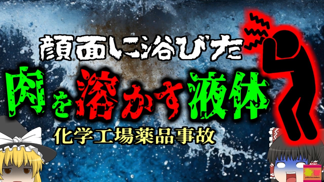 <a href="#" class="seekTime" data-seekTime="00:00" onclick="seekNicoPlayer('#00:00'); return false;">#00:00</a> OP<br><a href="#" class="seekTime" data-seekTime="00:12" onclick="seekNicoPlayer('#00:12'); return false;">#00:12</a> 農薬製造工場<br><a href="#" class="seekTime" data-seekTime="00:41" onclick="seekNicoPlayer('#00:41'); return false;">#00:41</a> パイプの詰まり<br><a href="#" class="seekTime" data-seekTime="1:10" onclick="seekNicoPlayer('#1:10'); return false;">#1:10</a> 水垢のような「スケール」<br><a href="#" class="seekTime" data-seekTime="2:02" onclick="seekNicoPlayer('#2:02'); return false;">#2:02</a> 検査を指示された三人<br><a href="#" class="seekTime" data-seekTime="2:32" onclick="seekNicoPlayer('#2:32'); return false;">#2:32</a> 窒素ガスで詰まり解消<br><a href="#" class="seekTime" data-seekTime="3:06" onclick="seekNicoPlayer('#3:06'); return false;">#3:06</a> ポンプの分解も<br><a href="#" class="seekTime" data-seekTime="3:30" onclick="seekNicoPlayer('#3:30'); return false;">#3:30</a> 被災<br><a href="#" class="seekTime" data-seekTime="4:10" onclick="seekNicoPlayer('#4:10'); return false;">#4:10</a> 化学混合液を大量に浴びる二人<br><a href="#" class="seekTime" data-seekTime="4:57" onclick="seekNicoPlayer('#4:57'); return false;">#4:57</a> 命は助かったが目には後遺症<br><a href="#" class="seekTime" data-seekTime="5:11" onclick="seekNicoPlayer('#5:11'); return false;">#5:11</a> 「水酸化カリウム」と腐食性<br><a href="#" class="seekTime" data-seekTime="6:16" onclick="seekNicoPlayer('#6:16'); return false;">#6:16</a> いくつもの要因が重なっていた<br><br>今回紹介するのは、とある化学工場で発生した労災事例です。<br>わが国の中国地方某所にあった化学工場ではこの日、作業員男性三名による、パイプの検査が行われていました。<br>この工場では、古くから農業用の培養土や農薬などを製造しており、その中の一つ、農薬を製造する工程で使用されていた、溶解釜とそれに繋がるパイプに詰まりが発見され、上司の指示により三名の男性が検査にあたっていました。<br>彼らはその最中、薬品の混合液を送り出すポンプを停止させ、パイプ内部の圧力が下がったことを圧力計で確認した上で、接続部であるフランジのボルトを取り外し、中を調べようとしましたがその瞬間、突然フランジの隙間から大量の混合液が噴出し、目の前にいた二人に襲い掛かってきました。<br>この混合液に使用されていたのは、タンパク質に対して腐食性の強い、「水酸化カリウム」。<br>二人はこの薬品をモロに身体に浴びてしまい、その後近くの病院に搬送され、治療を受けました。<br>幸い、命に別状はありませんでしたが、顔面を中心に上半身に化学熱傷を負い、視力低下の後遺症が残ってしまいました。<br>何故、圧力計で圧力が下がったことを確認していたのに、このような噴出が起きてしまったのでしょうか?<br><br>引用・出展・参考文献(視聴者提供資料)<br>Wikipedia 腐食<br><a href="https://ishort.ink/owV7" target="_blank" rel="noopener nofollow">https://ishort.ink/owV7</a><br>東京保険医療局 毒物劇物取扱責任者の資格<br><a href="https://ishort.ink/WH3q" target="_blank" rel="noopener nofollow">https://ishort.ink/WH3q</a><br><br><br><br />※この動画は過去の事件を知り、現在でも同じことが発生する危険性を再認識、関与しないように促すための動画であり、視聴者を扇動、動揺を誘うためのコンテンツではありません。<br><br>ご要望にお応えして、メンバーシップの開設を行いました。<br>下記URLからも登録可能ですので、ご興味がある方は是非ご参加ください。<br><a href="https://www.youtube.com/channel/UCcT5a1J7XJW7CLYI2RKl4pw/join" target="_blank" rel="noopener nofollow">https://www.youtube.com/channel/UCcT5a1J7XJW7CLYI2RKl4pw/join</a><br><br><br>Twitter<br>→<a href="https://twitter.com/yukkurisurutoko" target="_blank" rel="noopener nofollow">https://twitter.com/yukkurisurutoko</a><br><br>取り急ぎ、簡易的にですがマイリストを作りました。<br>【ゆっくり解説】事故・事件関係紹介リスト <br><a href="https://www.nicovideo.jp/mylist/71034319" target="_blank" rel="noopener nofollow">https://www.nicovideo.jp/mylist/71034319</a><br>【ゆっくり解説】放射線系事故<br><a href="https://www.nicovideo.jp/mylist/71034368" target="_blank" rel="noopener nofollow">https://www.nicovideo.jp/mylist/71034368</a><br>【ゆっくり解説】鉄道系事故・事件関連<br><a href="https://www.nicovideo.jp/mylist/71034379" target="_blank" rel="noopener nofollow">https://www.nicovideo.jp/mylist/71034379</a>