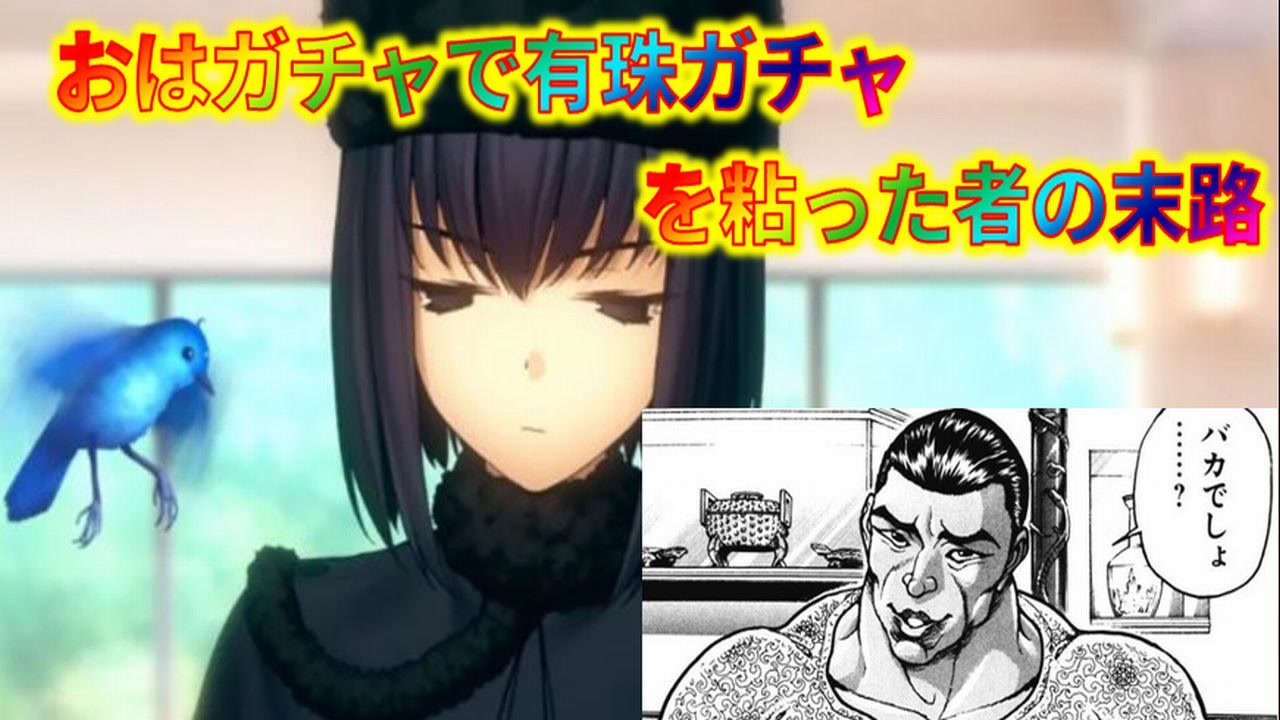 有珠をおはガチャ(+α)で狙いましょう。<br>有珠はスルーじゃなかったって・・・?<br>おはガチャはセーフだから<br><br><br>前 ⇒ まほよコラボ青子ガチャ <a href="https://www.nicovideo.jp/watch/sm43506013" class="watch">sm43506013</a><br>次 ⇒ スペースエレちゃん <a href="https://www.nicovideo.jp/watch/sm43944072" class="watch">sm43944072</a><br><br>FGOガチャ動画マイリスト ⇒ <a href="https://www.nicovideo.jp/mylist/57723852" target="_blank" rel="noopener">mylist/57723852</a><br>ビーナスイレブンびびっど! ⇒ <a href="https://www.nicovideo.jp/mylist/66096625" target="_blank" rel="noopener">mylist/66096625</a><br>閃乱カグラ ⇒ <a href="https://www.nicovideo.jp/mylist/57723845" target="_blank" rel="noopener">mylist/57723845</a><br>幻獣契約クリプトラクト ⇒ <a href="https://www.nicovideo.jp/mylist/66096613" target="_blank" rel="noopener">mylist/66096613</a><br>天下百剣イリヤコラボ ⇒ <a href="https://www.nicovideo.jp/watch/sm35476389" class="watch">sm35476389</a><br><br>
