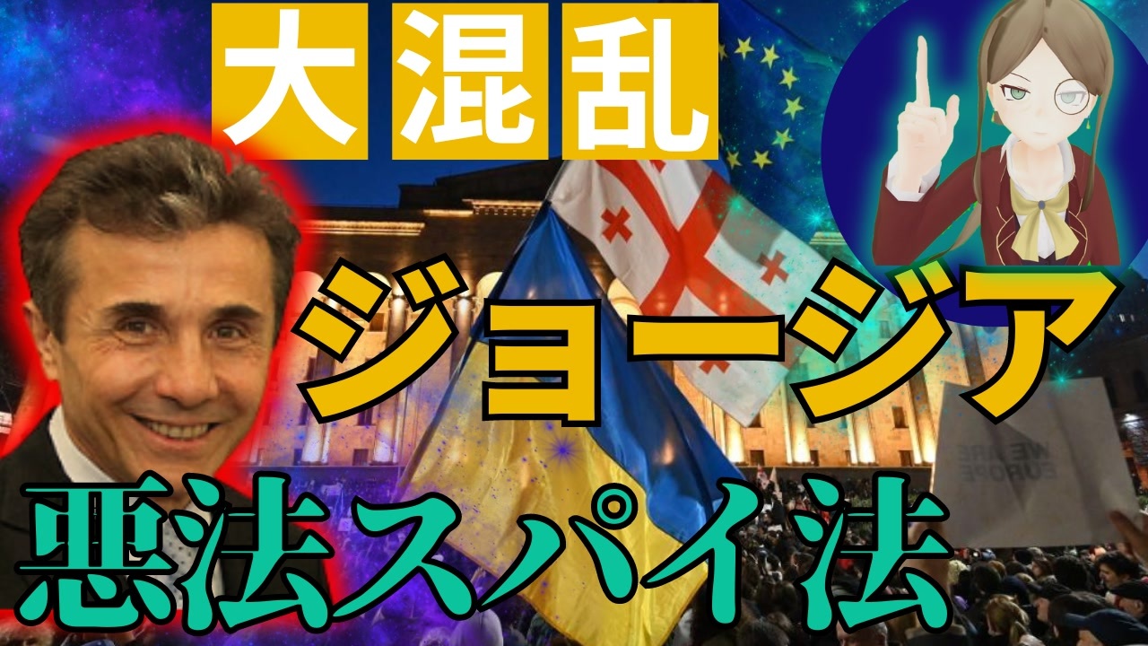 <span style="color: #000000; font-size: 18px;"><strong>コミュあります→co2018467</strong></span><br><br><br>今回はジョージアの大規模デモについてです!クーデターが起きてもおかしくない程に大きなデモになっています。日本でもスパイ法は必要とは思いますが、こんな法律はいやだなぁと思います!<br><br><br>前→<a href="https://www.nicovideo.jp/watch/sm41859605" class="watch">sm41859605</a> 次⇒しばしお待ちを マイリスト→【<a href="https://www.nicovideo.jp/mylist/55555326" target="_blank" rel="noopener">mylist/55555326</a>】<br><br>絵師様Twitter→@GesoSquidIka<br>主Twitter→@itukayaru0<br>K13様の作成してくれたMMDモデル→<a href="https://3d.nicovideo.jp/works/td43602" target="_blank" rel="noopener">td43602</a> <br><br>BGM→甘茶の音楽工房様、Music is VFR様 OtoLogic様、MusMus様<br>画像<br>著者Tyg728<br><a href="https://commons.wikimedia.org/wiki/File:Type_002_aircraft_carrier_of_People%27s_Liberation_Army_Navy.jpg" target="_blank" rel="noopener nofollow">https://commons.wikimedia.org/wiki/File:Type_002_aircraft_carrier_of_People%27s_Liberation_Army_Navy.jpg</a><br><br><br>海上保安庁<br><a href="https://www.kaiho.mlit.go.jp/" target="_blank" rel="noopener nofollow">https://www.kaiho.mlit.go.jp/</a><br>防衛省<br><a href="https://www.mod.go.jp/" target="_blank" rel="noopener nofollow">https://www.mod.go.jp/</a><br>内閣府<br><a href="https://www.cao.go.jp/notice/rule.html" target="_blank" rel="noopener nofollow">https://www.cao.go.jp/notice/rule.html</a><br>首相官邸<br><a href="https://www.kantei.go.jp/" target="_blank" rel="noopener nofollow">https://www.kantei.go.jp/</a><br>