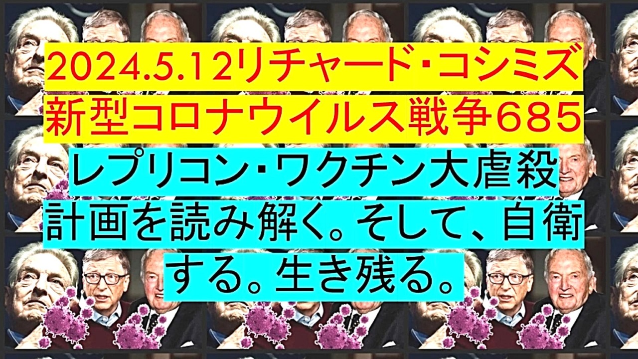 <span style="color: #cc4125;"><strong>「 テーマ : 新型コロナウイルス戦争 685 」</strong></span><br><br><span style="color: #ff0000;"><strong>「『 レプリコン・ワクチン 大虐殺計画 』を『 読み解く 』。そして、『 自衛する 』。『 生き残る 』」</strong></span><br><br> <span style="color: #0000ff;"><strong>◐『 イベルメクチン・アビガン服用後 』の体験談等をお寄せ下さい。RK</strong></span><br> <span style="color: #0000ff;"><strong>E-mail : richardkoshimizu@gmail.com</strong></span><br><br> <span style="color: #38761d;"><strong>◐ リチャード・コシミズ・チャンネル『⦅ ニコニコ チャンネル ⦆』</strong></span><br> <span style="color: #0000ff;"><strong><a href="https://ch.nicovideo.jp/richardkoshimizu" target="_blank" rel="noopener nofollow">https://ch.nicovideo.jp/richardkoshimizu</a></strong></span><br><br><span style="color: #38761d;"><strong> ◐ リチャード・コシミズ『 ニコニコ生放送⦅ LIVE ⦆』</strong></span><br> <span style="color: #0000ff;"><strong><a href="https://www.nicovideo.jp/user/120930363/live_programs" target="_blank" rel="noopener nofollow">https://www.nicovideo.jp/user/120930363/live_programs</a></strong></span><br><br><span style="color: #38761d;"><strong> ◐ リチャード・コシミズ『 Rumble 』公式 動画ギャラリー</strong></span><br> <span style="color: #0000ff;"><strong><a href="https://rumble.com/user/richardkoshimizu" target="_blank" rel="noopener nofollow">https://rumble.com/user/richardkoshimizu</a></strong></span><br><br> <span style="color: #38761d;"><strong>◐ リチャード・コシミズ『 ニコニコ動画⦅ 全動画 ⦆』公式 動画ギャラリー</strong></span><br> <span style="color: #0000ff;"><strong><a href="https://www.nicovideo.jp/user/121957117/video" target="_blank" rel="noopener nofollow">https://www.nicovideo.jp/user/121957117/video</a></strong></span>