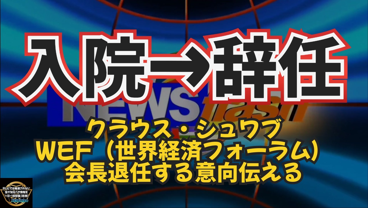 速報:クラウスシュワブ、WEF会長を退任<br><br>1971年に世界経済フォーラムを創設したクラウス・シュワブ氏が、2025年に非常勤に移行するため、会長職を退くことを発表。彼の決断をめぐっては、健康上の問題からWEFの今後の方向性まで、さまざまな憶測が飛び交っているよう。<br><a href="https://x.gd/TUDuB" target="_blank" rel="noopener nofollow">https://x.gd/TUDuB</a><br><br><br>あなたの知らないアメリカnews<br>【速報】クラウス・シュワブ、世界経済フォーラム会長を辞任<br>世界経済フォーラム(WEF)の創設者であり、長年にわたり会長職を務めてきたクラウス・シュワブ氏が、退任の意向をスタッフにメールで伝えた<br><a href="https://x.gd/YiAOZJ" target="_blank" rel="noopener nofollow">https://x.gd/YiAOZJ</a><br><br><br>NEW - Klaus Schwab will be stepping down as executive chairman of the World Economic Forum.<br><a href="https://x.gd/rw7EM" target="_blank" rel="noopener nofollow">https://x.gd/rw7EM</a><br><br><br>世界経済フォーラム創設者のクラウス・シュワブ氏、重役ポストから退く<br><a href="https://x.gd/O4UdT" target="_blank" rel="noopener nofollow">https://x.gd/O4UdT</a><br>WEF創設者であり、会長であるクラウス・シュワブ氏が1971年に創設して以来、世界的な集まりであるWEFの運営から退くことになった<br><a href="https://x.gd/l1JwN" target="_blank" rel="noopener nofollow">https://x.gd/l1JwN</a><br><br><br>世界経済フォーラム WEF クラウス・シュワブ ディープステート ネオコン グローバリスト 人口削減 アジェンダ アジェンダ2030 LGBT 気候変動 脱炭素 SDGs 全体主義 グローバリズム スマートシティ 15分都市 デジタルID デジタル通貨 トランスヒューマニズム ムーンショット計画 人類の敵 人道に対する罪 グローバルエリート 富裕層 優生学 シオニスト ロックフェラー ロスチャイルド 300人委員会 陰謀論 パンデミック パンデミック条約 黒幕 人口削減アジェンダ <br><br><br><br />著作権、肖像権に配慮して作成しております。<br><br>◆気になったニュースの台本!?<br>メモ代わりに作った台本をそのままあげてます<br><a href="https://keiichiro8140.hatenablog.com/." target="_blank" rel="noopener nofollow">https://keiichiro8140.hatenablog.com/.</a><br><br><br>ここからはシリーズ紹介<br><br><br>◆ ワクチン解毒・デトックス<br><a href="https://x.gd/fZweg" target="_blank" rel="noopener nofollow">https://x.gd/fZweg</a><br><br>◆ウイリアム・マキス博士のがん治療(イベルメクチン・フェンベンダゾール等)<br><a href="https://x.gd/AtFYS" target="_blank" rel="noopener nofollow">https://x.gd/AtFYS</a><br><br>◆予防接種健康被害救済制度<br><a href="https://x.gd/0xK9x" target="_blank" rel="noopener nofollow">https://x.gd/0xK9x</a><br><br>◆気になったニュース #1501~<br><br>◆ 【ショートver】気になったニュース<br><a href="https://x.gd/7MxXC" target="_blank" rel="noopener nofollow">https://x.gd/7MxXC</a><br><br>◆ 気になったニュース #1001~<br><a href="https://x.gd/Lp8gv" target="_blank" rel="noopener nofollow">https://x.gd/Lp8gv</a><br><br>◆ 気になったニュース #501~<br><a href="https://x.gd/EmbS4" target="_blank" rel="noopener nofollow">https://x.gd/EmbS4</a><br><br>◆ 気になったニュース #1~#500<br><a href="https://x.gd/uPhNb" target="_blank" rel="noopener nofollow">https://x.gd/uPhNb</a><br><br>◆ X(旧Twitter)・テレグラムで気になった情報<br><a href="https://x.gd/YG6FT" target="_blank" rel="noopener nofollow">https://x.gd/YG6FT</a><br><br>◆ 日比谷5万人パレードデ⚪生放送アーカイブ動画<br><a href="https://x.gd/3CHJv" target="_blank" rel="noopener nofollow">https://x.gd/3CHJv</a><br><br>◆日比谷5万人パレード⚪モのマイリスト作ってみました<br><a href="https://nico.ms/mylist/76828848?ref=sp_other" target="_blank" rel="noopener nofollow">https://nico.ms/mylist/76828848?ref=sp_other</a><br><br>◆3.30 令和の百姓⚪⚪<br><a href="https://www.nicovideo.jp/series/511791?ref=garage_share_other" target="_blank" rel="noopener nofollow">https://www.nicovideo.jp/series/511791?ref=garage_share_other</a><br><br>◆ 及川幸久さんの【XNEWS】シリーズ<br><a href="https://x.gd/3k78K" target="_blank" rel="noopener nofollow">https://x.gd/3k78K</a><br><br>◆これまでの動画<a href="https://x.gd/sPXoJ" target="_blank" rel="noopener nofollow">https://x.gd/sPXoJ</a><br><br>◆もしも(BAN)の時のためのマイリンク集<a href="https://lit.link/K-16_News44" target="_blank" rel="noopener nofollow">https://lit.link/K-16_News44</a><br><br>