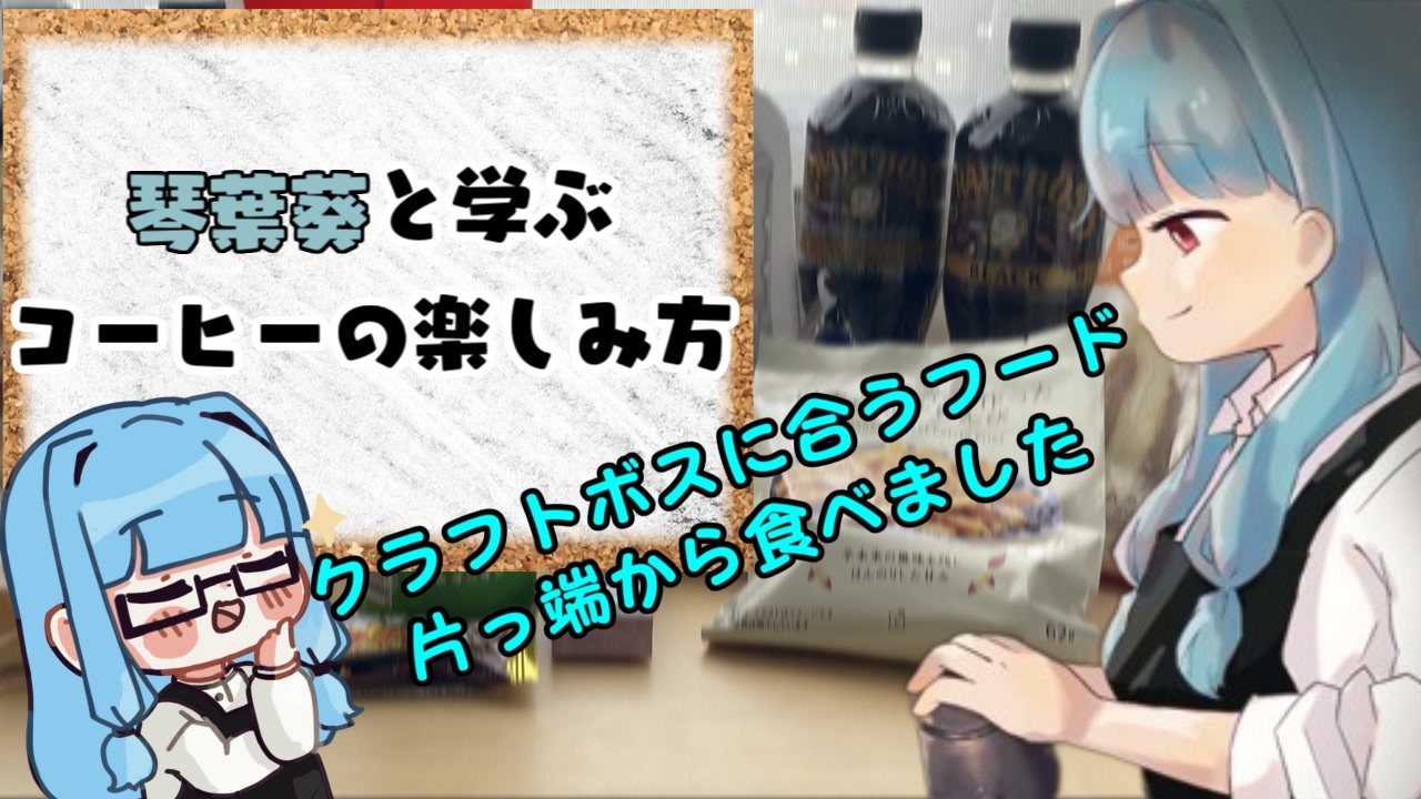 さすがにクラフトボス飲み飽きてきた<span style="color: #00ffff;">(葵)</span><br><br>実はファイターズオタク以外の一面もあった琴葉葵ちゃんに、<br>日常でのコーヒーの楽しみ方について話してもらいました。<br><br>SDやサムネの葵ちゃんはもっふっふ様に描いていただきました。<br>いつもありがとうございます!<br>もっふっふ様Twitter(X) <a href="https://twitter.com/Ahoge_WiFi" target="_blank" rel="noopener nofollow">https://twitter.com/Ahoge_WiFi</a><br><br>参考文献<br>コーヒーの科学 旦部幸博<br>おいしい珈琲を自宅で淹れる本 富田佐奈栄<br>珈琲の表現 蕪木祐介<br>とか<br><br>音楽:BGMer<br><a href="http://bgmer.net" target="_blank" rel="noopener nofollow">http://bgmer.net</a><br><br>制作者Twitter <a href="https://twitter.com/ZangiUmaUma " target="_blank" rel="noopener nofollow">https://twitter.com/ZangiUmaUma </a><br>YouTubeにも同時投稿してます(大嘘でもなくなった)<br><br><br>お借りした素材 <br>・立ち絵<br>…琴葉姉妹_立ち絵素材 むにさが様 <a href="https://seiga.nicovideo.jp/seiga/im7050036" target="_blank" rel="noopener">im7050036</a><br>…小春六花立ち絵素材 ふにちか様 <a href="https://seiga.nicovideo.jp/seiga/im10673550" target="_blank" rel="noopener">im10673550</a><br>上記以外の立ち絵 もっふっふ様<br>詳細はコンテンツツリーに。<br> <br>普段は野球系の実況解説応援歌歌動画など作ってます<br>実況Part1まとめマイリスト→<a href="https://www.nicovideo.jp/mylist/71920261" target="_blank" rel="noopener">mylist/71920261</a><br>野球のルール解説動画Part1→<a href="https://www.nicovideo.jp/watch/sm39610831" class="watch">sm39610831</a><br>前→<a href="https://www.nicovideo.jp/watch/sm43529272" class="watch">sm43529272</a><br>次→ファイターズが勝てば勝つほど早くなります<br><br>
