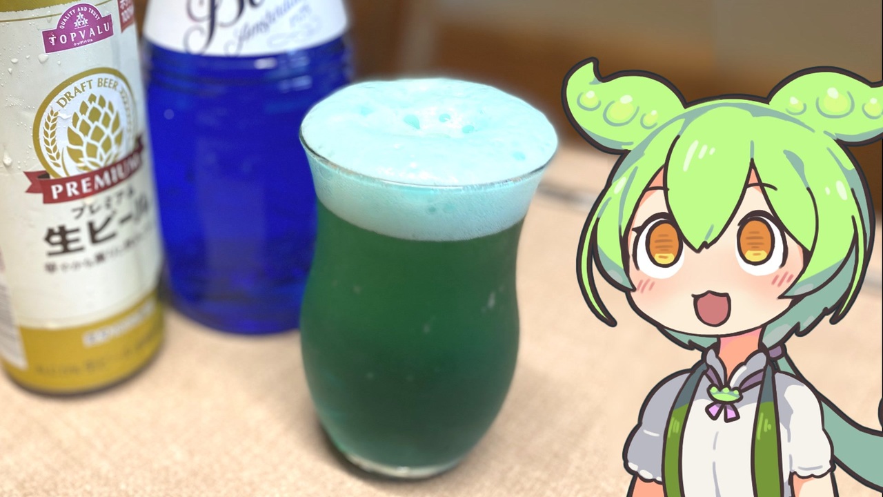 一昨年、長野県松本市へサッカー観戦に行った際、緑色のビールを飲んだのですが<br>どうやらブルーキュラソーというリキュールとビールを混ぜて作るみたいです。<br>と、いうことで今回は緑のビールを作っていきます。<br><br><br>【関連動画】<br>【FC岐阜観戦記】Jリーグ 松本山雅のスタジアムグルメ<br>「緑色の謎ビールと他2品」(2023年9月24日<br><a href="https://www.nicovideo.jp/watch/sm42810000" target="_blank" rel="noopener nofollow">https://www.nicovideo.jp/watch/sm42810000</a><br><br>【参考】<br>プレミアム生ビール(トップバリュ)<br><a href="https://www.topvalu.net/items/detail/4549414474688/" target="_blank" rel="noopener nofollow">https://www.topvalu.net/items/detail/4549414474688/</a><br>ディナフト 3種のミックスナッツ(トップバリュ)<br><a href="https://www.topvalu.net/items/detail/4549414564631/" target="_blank" rel="noopener nofollow">https://www.topvalu.net/items/detail/4549414564631/</a><br>ボルスで、暮らしに彩りを。(アサヒビールス)<br><a href="https://www.asahibeer.co.jp/enjoy/liquorworld/brand/bols/" target="_blank" rel="noopener nofollow">https://www.asahibeer.co.jp/enjoy/liquorworld/brand/bols/</a><br>リキュールって何?(アサヒビール)<br><a href="https://www.asahibeer.co.jp/customer/post-75.html" target="_blank" rel="noopener nofollow">https://www.asahibeer.co.jp/customer/post-75.html</a><br>リキュールの「キュラソー」とは?(アサヒビール)<br><a href="https://www.asahibeer.co.jp/customer/post-353.html" target="_blank" rel="noopener nofollow">https://www.asahibeer.co.jp/customer/post-353.html</a><br>リキュールとは?リキュールの種類や飲み方、カクテルや梅酒との違いについて(酒みづき)<br><a href="https://www.sawanotsuru.co.jp/site/nihonshu-columm/knowledge/liqueur/" target="_blank" rel="noopener nofollow">https://www.sawanotsuru.co.jp/site/nihonshu-columm/knowledge/liqueur/</a><br>ブルーキュラソーで作るカクテル15選!見た目も味もすっきり爽やか(macaroni)<br><a href="https://macaro-ni.jp/53911" target="_blank" rel="noopener nofollow">https://macaro-ni.jp/53911</a><br><br>【使用した素材】(※敬称略)<br>(合成音声)VOICEVOX/ずんだもん/四国めたん<br><a href="https://voicevox.hiroshiba.jp/" target="_blank" rel="noopener nofollow">https://voicevox.hiroshiba.jp/</a><br>(立ち絵)坂本アヒル<br><a href="https://seiga.nicovideo.jp/seiga/im10788496" target="_blank" rel="noopener">im10788496</a>/<a href="https://seiga.nicovideo.jp/seiga/im10791276" target="_blank" rel="noopener">im10791276</a><br>(楽曲)甘茶の音楽工房/「日々是好日」<br><a href="https://amachamusic.chagasi.com" target="_blank" rel="noopener nofollow">https://amachamusic.chagasi.com</a>