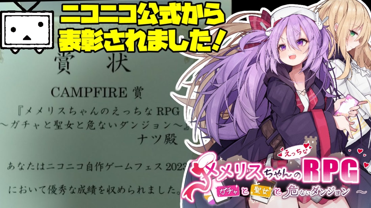 メメリスちゃんRPGがDLサイトにて発売開始しました!<br>何卒購入してプレイしていただけると嬉しいです!!<br>【メメリスちゃんのえっちなRPG ~ガチャと聖女と危ないダンジョン~】<br><a href="https://www.dlsite.com/maniax/dlaf/=/t/s/link/work/aid/natu2525/id/RJ01050555.html" target="_blank" rel="noopener nofollow">https://www.dlsite.com/maniax/dlaf/=/t/s/link/work/aid/natu2525/id/RJ01050555.html</a><br><br>▼ゲームのダウンロードはこちらから(無料体験版が楽しめます)<br>【ファンボ】<a href="https://natsu.fanbox.cc/" target="_blank" rel="noopener nofollow">https://natsu.fanbox.cc/</a><br>【ci-en】<a href="https://ci-en.dlsite.com/creator/11070" target="_blank" rel="noopener nofollow">https://ci-en.dlsite.com/creator/11070</a><br>【ファンティア】<a href="https://fantia.jp/fanclubs/7733" target="_blank" rel="noopener nofollow">https://fantia.jp/fanclubs/7733</a><br><br>▼メメリスちゃんグッズはこちら!<br>【booth】<a href="https://memerisu.booth.pm/" target="_blank" rel="noopener nofollow">https://memerisu.booth.pm/</a><br><br>動画のご意見やご感想はこちらに<br>【ツイッター】<a href="https://twitter.com/natu5505" target="_blank" rel="noopener nofollow">https://twitter.com/natu5505</a><br>【misskey】<a href="https://misskey.io/@natu5505" target="_blank" rel="noopener nofollow">https://misskey.io/@natu5505</a><br>【ニコ生】co1196089<br>【YouTube】<a href="https://www.youtube.com/channel/UCDclEY1cvwgHA7isrf7C3Ag?sub_confirmation=1" target="_blank" rel="noopener nofollow">https://www.youtube.com/channel/UCDclEY1cvwgHA7isrf7C3Ag?sub_confirmation=1</a><br><br>【メメリスちゃんのえっちなRTA】<a href="https://www.nicovideo.jp/watch/sm40337589" class="watch">sm40337589</a><br><br>【前回】<a href="https://www.nicovideo.jp/watch/sm43799678" class="watch">sm43799678</a>【次回進歩】<a href="https://www.nicovideo.jp/watch/sm43874020" class="watch">sm43874020</a><br><br>【投稿動画part1まとめ】<a href="https://www.nicovideo.jp/mylist/62522490" target="_blank" rel="noopener">mylist/62522490</a>
