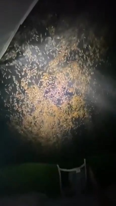 ホモと見るテントの外に群がる虫
