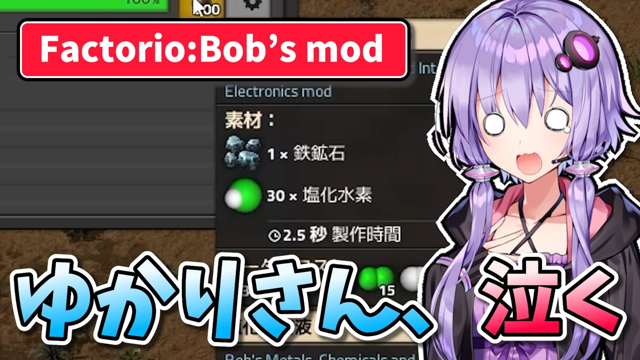 【Factorio Bob's mod】結月ゆかりのもっと!工場経営 #12【VOICEROID実況】 7:12