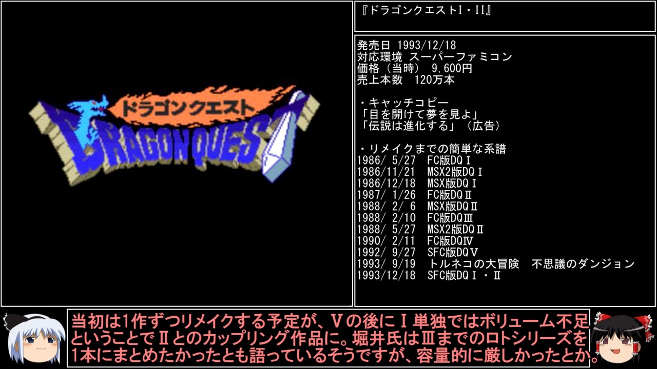 DQⅠの2周目、SFCDQⅠ編part1です。<br>やっぱSFC版は実家に帰ってきた感がありますね。<br>5/27にドラクエの日を迎えましたが、ツイッターでラダドームサーチしたところ、勘違いしているラダド―マー達が5月だけで11名いました。本当に思っている以上に多いんですよね。<br><br>まさかのニコニコニュースにて取り上げていただきました! 物凄く丁寧な記事に感激!!<br>感謝を込めて来週は水・金の週2投稿です!!!<br>→<a href="https://news.nicovideo.jp/watch/nw14989977" target="_blank" rel="noopener nofollow">https://news.nicovideo.jp/watch/nw14989977</a><br><br>前→<a href="https://www.nicovideo.jp/watch/sm43822450" class="watch">sm43822450</a><br>次→<a href="https://www.nicovideo.jp/watch/sm43873102" class="watch">sm43873102</a><br><br>YouTube版→<a href="https://youtu.be/VLa0D9nQi3M" target="_blank" rel="noopener nofollow">https://youtu.be/VLa0D9nQi3M</a><br><br>縛りルール(詳細はpart1参照)<br>①一度使った武器・防具・装飾品・道具・呪文・特技は<br> 次作品以降使用禁止。(売却も解禁扱い)<br><br> 一度使った職業(3,6,7)・仲間モンスター(5,6)・スカウトモンスター(8)は<br> 戦士(Ⅲ)、戦士(Ⅵ)のようにナンバリングで分類し次作品以降使用禁止。<br> また複数体加入できる仲間モンスターは一体まで。<br><br>②裏技、バグ技、全滅、逃走、おどかす禁止。<br> またダンジョン攻略とボス戦における状況再現禁止。<br><br>③ダンジョンとボス攻略は、全キャラのレベルを突入時、<br> 1周目は目標レベル+5。2周目は+10。3周目は+15まで。<br> ラスボスの目標レベルは45。裏ボスは50とする。<br>(目標レベルは各公式ガイドブックを参照)<br><br>④1周目はEDまで。2周目は裏ボス撃破まで。<br> 3周目は全てのボスを規定回数、規定ターン以内に倒す。<br>(回避可能なボスも倒し、闇ゾーマは3周全てで倒す)<br><br><br><span style="color: #262626;">※一部機種は互換機を使用してのプレイとなりますが、倍速機能やクイックセーブ・ロード、チートなどは一切使用しません。</span><br><br>※ネタバレ注意です<br><br>この動画で利用している株式会社スクウェア・エニックスを代表とする共同著作者が権利を所有する著作物及びスギヤマ工房有限会社が権利を所有する楽曲の転載・配布は禁止いたします。<br>(C) ARMOR PROJECT/BIRD STUDIO/SQUARE ENIX All Rights Reserved.<br>(C) SUGIYAMA KOBO (P) SUGIYAMA KOBO<br><br>AquesTalk2ライセンスID:AQTK2WINUSR23122185<br /><br><br>❤いいねを押していただけるとモチベーションと投稿速度が上がるので宜しくお願い致します!<br><br>作者ツイッター→ <a href="https://twitter.com/nig0117" target="_blank" rel="noopener nofollow">https://twitter.com/nig0117</a><br>PIXIV FANBOX→ <a href="https://sutanokeiji.fanbox.cc/" target="_blank" rel="noopener nofollow">https://sutanokeiji.fanbox.cc/</a><br><br>( 以前はWEB小説書いてました→ <a href="https://kakuyomu.jp/works/1177354054884910267" target="_blank" rel="noopener nofollow">https://kakuyomu.jp/works/1177354054884910267</a> )