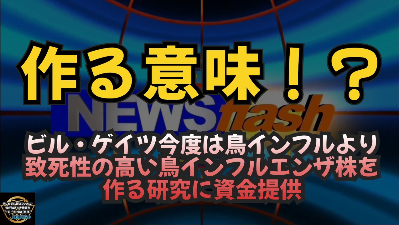 ビル・ゲイツ、今度は鳥インフル/より致死性の高い鳥インフルエンザ株を作る研究に資金提供<br><br>億万長者のビル・ゲイツは、人間や家畜に急速に広がる、はるかに致死性が高く、より伝染性の高い鳥インフルエンザの株を作り出すことを目的とした危険な機能獲得研究に資金を提供している<br><a href="https://x.com/TotalWorld1/status/1795603963317817736?t=J5vI94o6TkDH7RU2gpFwqA&s=19" target="_blank" rel="noopener nofollow">https://x.com/TotalWorld1/status/1795603963317817736?t=J5vI94o6TkDH7RU2gpFwqA&s=19</a><br><br><br>ビル・ゲイツの内部告発者が、予防接種を受けた人々に「前例のない死」の波が押し寄せていると内部告発<br><br><br>ビル・ゲイツのワクチン専門家であった世界的に有名な科学者が、新型コロナmRNAワクチンを接種した人々の間に「罹患率」と「死亡率」の波が押し寄せることを警告する内部告発を行った。<br>ビル&メリンダ・ゲイツ財団の元科学者でワクチン専門家のゲルト・ヴァンデン・ボッシェ<br>博士は、世界中の人口がまもなく「まったく前例のない」急減を経験するだろうと警告している。<br><a href="https://x.com/himuro398/status/1787696756207267936?t=ydoEOSEX0iEikiDzig9tiw&s=19" target="_blank" rel="noopener nofollow">https://x.com/himuro398/status/1787696756207267936?t=ydoEOSEX0iEikiDzig9tiw&s=19</a><br><br><br><br>ビル・ゲイツ 鳥インフルエンザ 鳥インフルエンザワクチン 新型コロナウイルス ワクチン 鳥インフルエンザウイルス パンデミック 次のパンデミック ワクチン薬害 ワクチン後遺症 ワクチン接種 ワクチン被害 ヴァンデン・ヴォッシュ mRNAワクチン スティーブ・カーシュ <br><br><br><br />著作権、肖像権に配慮して作成しております。<br><br>◆気になったニュースの台本!?<br>メモ代わりに作った台本をそのままあげてます<br><a href="https://keiichiro8140.hatenablog.com/." target="_blank" rel="noopener nofollow">https://keiichiro8140.hatenablog.com/.</a><br><br><br>ここからはシリーズ紹介<br><br><br>◆ ワクチン解毒・デトックス<br><a href="https://x.gd/fZweg" target="_blank" rel="noopener nofollow">https://x.gd/fZweg</a><br><br>◆ウイリアム・マキス博士のがん治療(イベルメクチン・フェンベンダゾール等)<br><a href="https://x.gd/AtFYS" target="_blank" rel="noopener nofollow">https://x.gd/AtFYS</a><br><br>◆予防接種健康被害救済制度<br><a href="https://x.gd/0xK9x" target="_blank" rel="noopener nofollow">https://x.gd/0xK9x</a><br><br>◆気になったニュース #1501~<br><br>◆ 【ショートver】気になったニュース<br><a href="https://x.gd/7MxXC" target="_blank" rel="noopener nofollow">https://x.gd/7MxXC</a><br><br>◆ 気になったニュース #1001~<br><a href="https://x.gd/Lp8gv" target="_blank" rel="noopener nofollow">https://x.gd/Lp8gv</a><br><br>◆ 気になったニュース #501~<br><a href="https://x.gd/EmbS4" target="_blank" rel="noopener nofollow">https://x.gd/EmbS4</a><br><br>◆ 気になったニュース #1~#500<br><a href="https://x.gd/uPhNb" target="_blank" rel="noopener nofollow">https://x.gd/uPhNb</a><br><br>◆ X(旧Twitter)・テレグラムで気になった情報<br><a href="https://x.gd/YG6FT" target="_blank" rel="noopener nofollow">https://x.gd/YG6FT</a><br><br>◆ 日比谷5万人パレードデ⚪生放送アーカイブ動画<br><a href="https://x.gd/3CHJv" target="_blank" rel="noopener nofollow">https://x.gd/3CHJv</a><br><br>◆日比谷5万人パレード⚪モのマイリスト作ってみました<br><a href="https://nico.ms/mylist/76828848?ref=sp_other" target="_blank" rel="noopener nofollow">https://nico.ms/mylist/76828848?ref=sp_other</a><br><br>◆3.30 令和の百姓⚪⚪<br><a href="https://www.nicovideo.jp/series/511791?ref=garage_share_other" target="_blank" rel="noopener nofollow">https://www.nicovideo.jp/series/511791?ref=garage_share_other</a><br><br>◆ 及川幸久さんの【XNEWS】シリーズ<br><a href="https://x.gd/3k78K" target="_blank" rel="noopener nofollow">https://x.gd/3k78K</a><br><br>◆これまでの動画<a href="https://x.gd/sPXoJ" target="_blank" rel="noopener nofollow">https://x.gd/sPXoJ</a><br><br>◆もしも(BAN)の時のためのマイリンク集<a href="https://lit.link/K-16_News44" target="_blank" rel="noopener nofollow">https://lit.link/K-16_News44</a><br><br>
