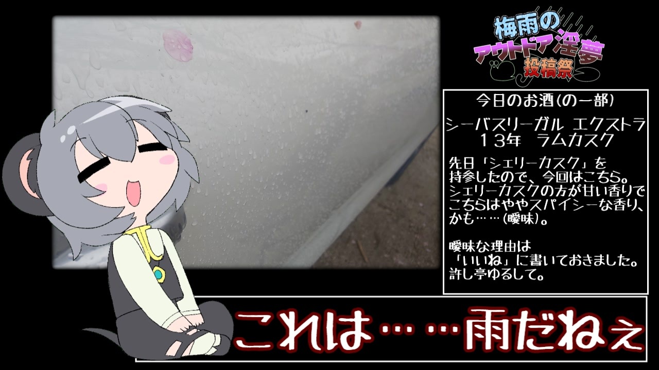 キャンプ中 雨に降られる NYN姉貴<br><strong>投稿祭参加動画です。(告知動画 → <a href="https://www.nicovideo.jp/watch/sm43674877" class="watch">sm43674877</a>)</strong><br>前回 <a href="https://www.nicovideo.jp/watch/sm43613429" class="watch">sm43613429</a><br><br>何かありましたら消します。<br>