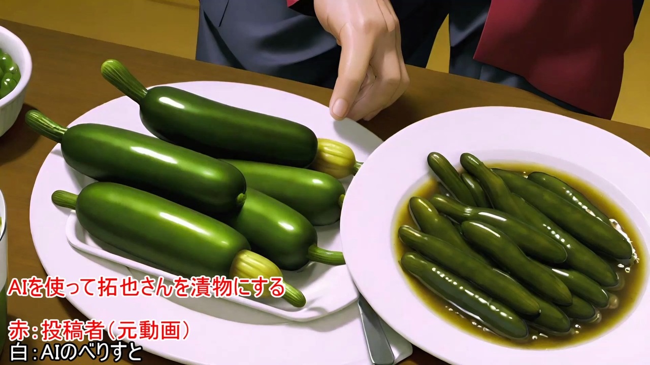 データ詳細 AIを使って「AIを使って拓也さんを漬物にする」のイラストを生成してもらった