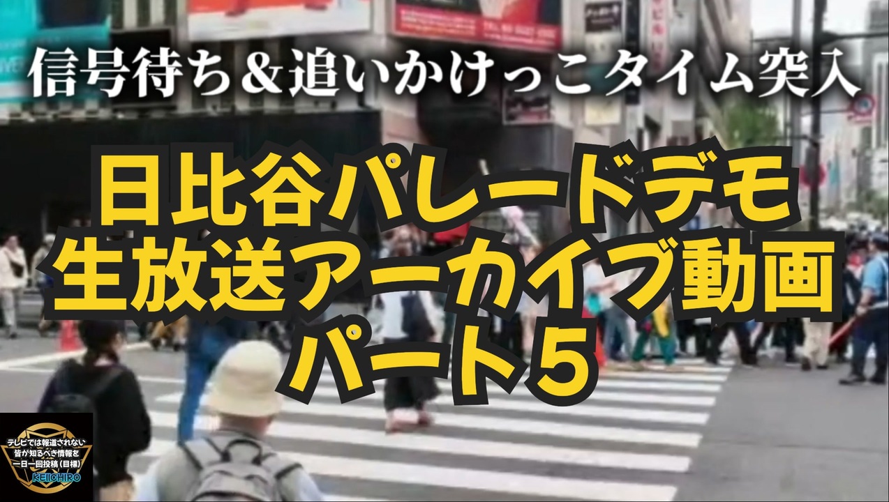 パート6 → <a href="https://www.nicovideo.jp/watch/sm43859548" class="watch">sm43859548</a><br><br>今回の日比谷5万人パレードデモのマイリストも作ってみました<br><a href="https://nico.ms/mylist/76828848?ref=sp_other" target="_blank" rel="noopener nofollow">https://nico.ms/mylist/76828848?ref=sp_other</a><br><br>日比谷5万人パレードデモ行ってきました!生放送を20分で分割してますパート5<br><br>放送中細切れが良いという要望に応えまして20分刻みにさせていただきました┏○))<br><br>※20分の動画から電波が途切れている部分は倍速で飛ばして編集しています<br><br>パレードデモを対面の通りから撮影する作戦に変更<br>デモ隊を撮影しながら追いかけっこ編です<br>信号待ちとデモ隊追いかけっこ編突入!<br><br>画質、電波状況が悪いのは勘弁してください<br><br>雰囲気をお楽しみください<br><br><br><br>今回の日比谷パレードデモ生放送動画<br>全11回+感想<br>シリーズURL<br><a href="https://www.nicovideo.jp/series/476581?ref=garage_share_other" target="_blank" rel="noopener nofollow">https://www.nicovideo.jp/series/476581?ref=garage_share_other</a><br><br><br>日比谷デモ 日比谷デモパレード 日比谷5万人デモ <br>ワクチン パンデミック条約 超過死亡 IHR改定 レプリコンワクチン WHO 厚労省 明治製菓ファルマ ワクチン薬害 ワクチン後遺症 メディア 政府 報道されない国民運動 日比谷パレードデモ パンデミック条約反対 銀座 デモ行進 日本人の団結力 大衆の力 ピープルパワー WHOから命をまもる国民運動<br>日比谷 デモ 4万人 LIVE HIBIYA WHO脱退<br><br><br><br />著作権、肖像権に配慮して作成しております。<br><br>◆気になったニュースの台本!?<br>メモ代わりに作った台本をそのままあげてます<br><a href="https://keiichiro8140.hatenablog.com/." target="_blank" rel="noopener nofollow">https://keiichiro8140.hatenablog.com/.</a><br><br><br>ここからはシリーズ紹介<br><br><br>◆ ワクチン解毒・デトックス<br><a href="https://x.gd/fZweg" target="_blank" rel="noopener nofollow">https://x.gd/fZweg</a><br><br>◆ウイリアム・マキス博士のがん治療(イベルメクチン・フェンベンダゾール等)<br><a href="https://x.gd/AtFYS" target="_blank" rel="noopener nofollow">https://x.gd/AtFYS</a><br><br>◆予防接種健康被害救済制度<br><a href="https://x.gd/0xK9x" target="_blank" rel="noopener nofollow">https://x.gd/0xK9x</a><br><br>◆気になったニュース #1501~<br><br>◆ 【ショートver】気になったニュース<br><a href="https://x.gd/7MxXC" target="_blank" rel="noopener nofollow">https://x.gd/7MxXC</a><br><br>◆ 気になったニュース #1001~<br><a href="https://x.gd/Lp8gv" target="_blank" rel="noopener nofollow">https://x.gd/Lp8gv</a><br><br>◆ 気になったニュース #501~<br><a href="https://x.gd/EmbS4" target="_blank" rel="noopener nofollow">https://x.gd/EmbS4</a><br><br>◆ 気になったニュース #1~#500<br><a href="https://x.gd/uPhNb" target="_blank" rel="noopener nofollow">https://x.gd/uPhNb</a><br><br>◆ X(旧Twitter)・テレグラムで気になった情報<br><a href="https://x.gd/YG6FT" target="_blank" rel="noopener nofollow">https://x.gd/YG6FT</a><br><br>◆ 日比谷5万人パレードデ⚪生放送アーカイブ動画<br><a href="https://x.gd/3CHJv" target="_blank" rel="noopener nofollow">https://x.gd/3CHJv</a><br><br>◆日比谷5万人パレード⚪モのマイリスト作ってみました<br><a href="https://nico.ms/mylist/76828848?ref=sp_other" target="_blank" rel="noopener nofollow">https://nico.ms/mylist/76828848?ref=sp_other</a><br><br>◆3.30 令和の百姓⚪⚪<br><a href="https://www.nicovideo.jp/series/511791?ref=garage_share_other" target="_blank" rel="noopener nofollow">https://www.nicovideo.jp/series/511791?ref=garage_share_other</a><br><br>◆ 及川幸久さんの【XNEWS】シリーズ<br><a href="https://x.gd/3k78K" target="_blank" rel="noopener nofollow">https://x.gd/3k78K</a><br><br>◆これまでの動画<a href="https://x.gd/sPXoJ" target="_blank" rel="noopener nofollow">https://x.gd/sPXoJ</a><br><br>◆もしも(BAN)の時のためのマイリンク集<a href="https://lit.link/K-16_News44" target="_blank" rel="noopener nofollow">https://lit.link/K-16_News44</a><br><br>
