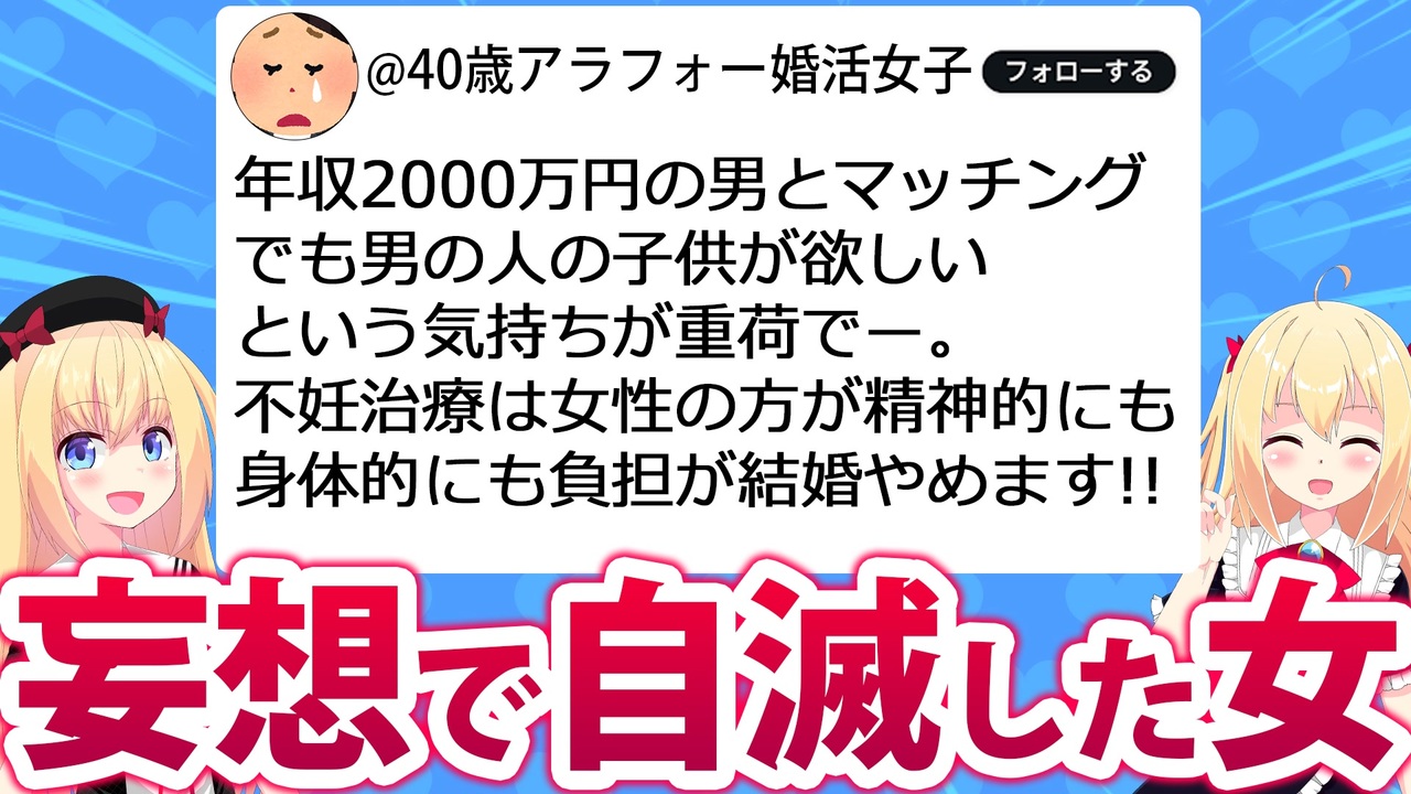 【パウラの記事】<a href="https://www.paurach.com/202406015221/" target="_blank" rel="noopener nofollow">https://www.paurach.com/202406015221/</a><br><br>【出典】<a href="https://toyokeizai.net/articles/-/755268" target="_blank" rel="noopener nofollow">https://toyokeizai.net/articles/-/755268</a><br>「婚活よりつらい経験」40歳女性が直面した"現実"<br><br><br />【サブチャンネル】<a href="https://www.youtube.com/channel/UCNeJoEWLt0jeZ0n5lDFalJg?sub_confirmation=1" target="_blank" rel="noopener nofollow">https://www.youtube.com/channel/UCNeJoEWLt0jeZ0n5lDFalJg?sub_confirmation=1</a> <br><br>【素材など、よくお世話になっているサイト(敬称略)】<br>BGMer <a href="https://bgmer.net" target="_blank" rel="noopener nofollow">https://bgmer.net</a><br>いらすとや <a href="https://www.irasutoya.com/" target="_blank" rel="noopener nofollow">https://www.irasutoya.com/</a><br>イラストAC <a href="https://www.ac-illust.com/" target="_blank" rel="noopener nofollow">https://www.ac-illust.com/</a><br>photoAC <a href="https://www.photo-ac.com/" target="_blank" rel="noopener nofollow">https://www.photo-ac.com/</a><br>効果音ラボ <a href="https://soundeffect-lab.info/" target="_blank" rel="noopener nofollow">https://soundeffect-lab.info/</a><br>DOVA-SYNDROME <a href="https://dova-s.jp/" target="_blank" rel="noopener nofollow">https://dova-s.jp/</a><br>甘茶の音楽工房 <a href="http://amachamusic.chagasi.com/index.html" target="_blank" rel="noopener nofollow">http://amachamusic.chagasi.com/index.html</a><br>魔王魂 <a href="https://maoudamashii.jokersounds.com/" target="_blank" rel="noopener nofollow">https://maoudamashii.jokersounds.com/</a><br>ニコニ・コモンズ <a href="https://commons.nicovideo.jp/" target="_blank" rel="noopener nofollow">https://commons.nicovideo.jp/</a><br><br>★BGM★<br>Happy Smile Paura - Music by Mixtery<br><a href="https://mix-mastery.stores.jp" target="_blank" rel="noopener nofollow">https://mix-mastery.stores.jp</a><br> ※本動画ではパウラちゃんねる専用BGMを使用しています。 <br><br>#パウラちゃんねる <br><br>当チャンネルはAmazon.co.jpを宣伝しリンクすることによって紹介料を獲得できる手段を提供することを目的に設定されたアフィリエイトプログラムである、Amazonアソシエイト・プログラムの参加者です。